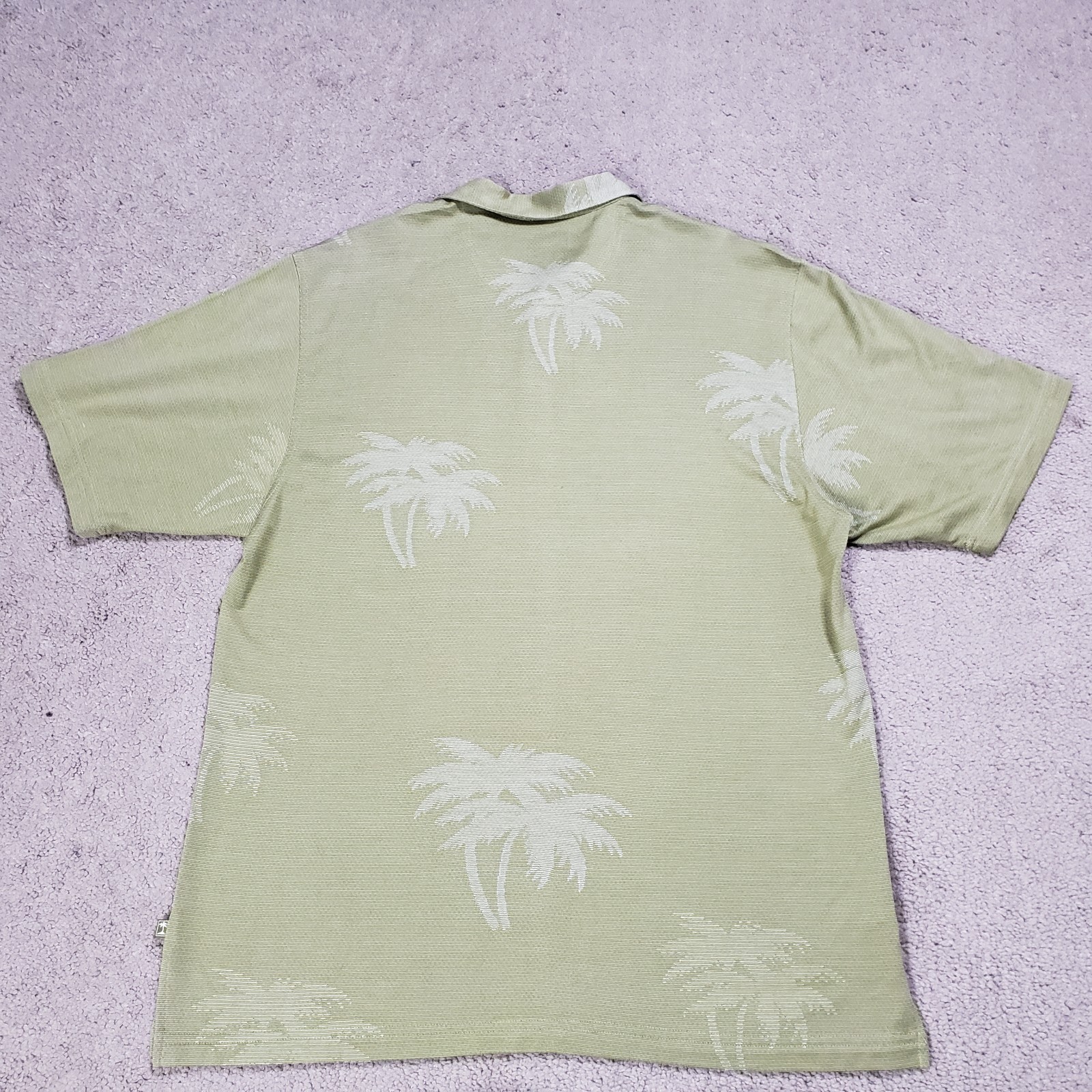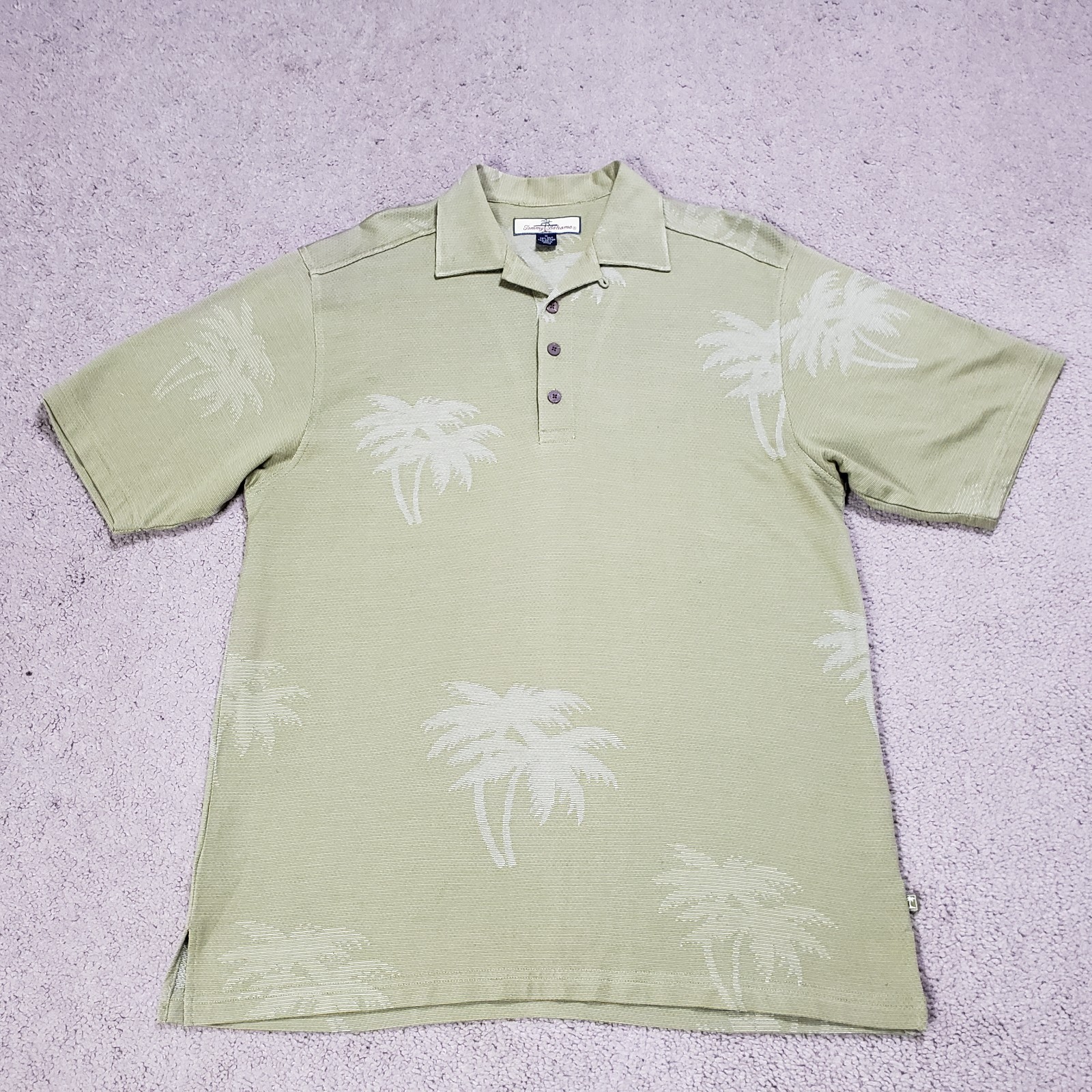 как выглядит Tommy Bahama Mens Silk Cotton Polo Shirt M Green Jacquard Palm Trees Loop Collar фото