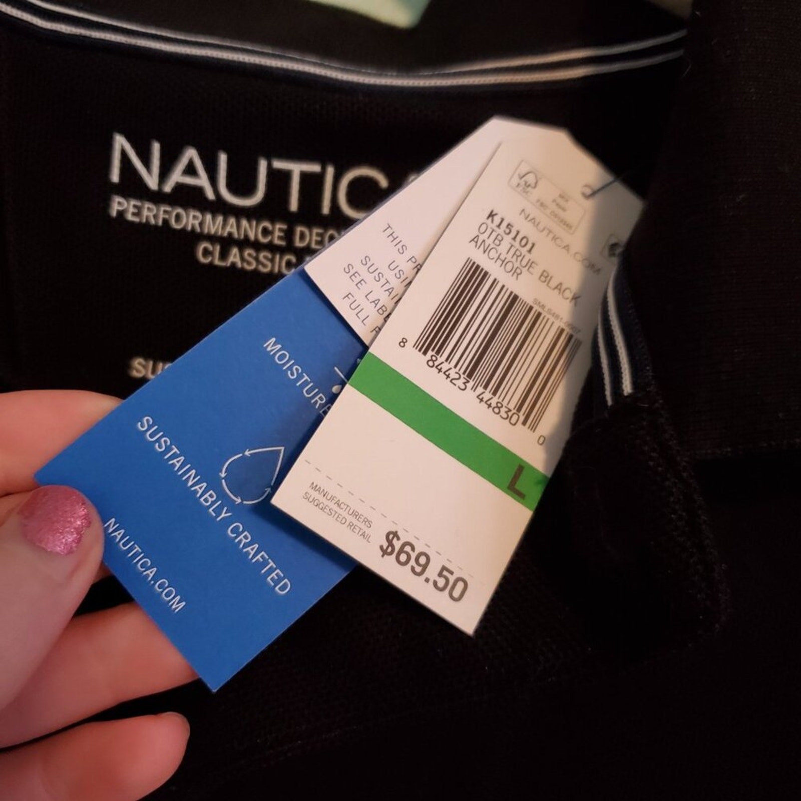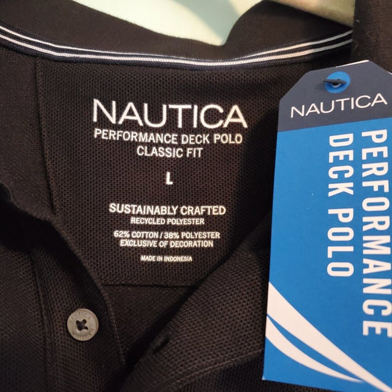 как выглядит Nautica Mens Black Polo Shirt Size Large NWT Performance Deck Polo Classic Fit фото