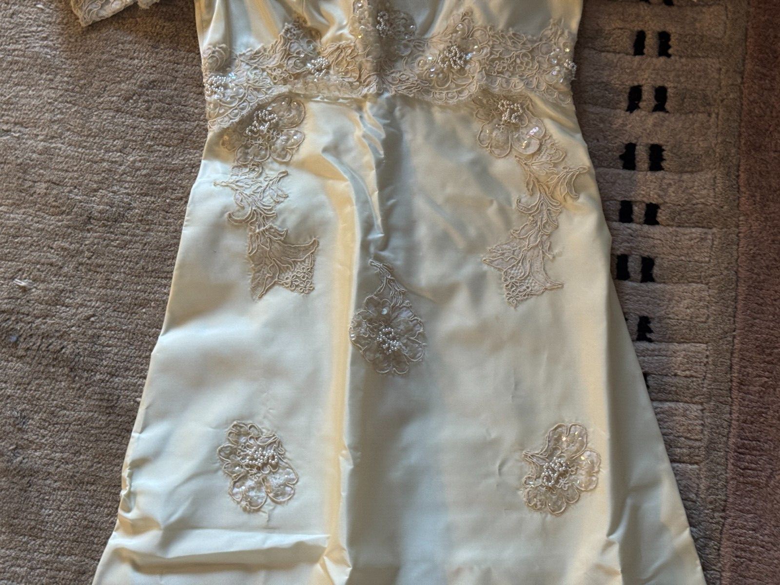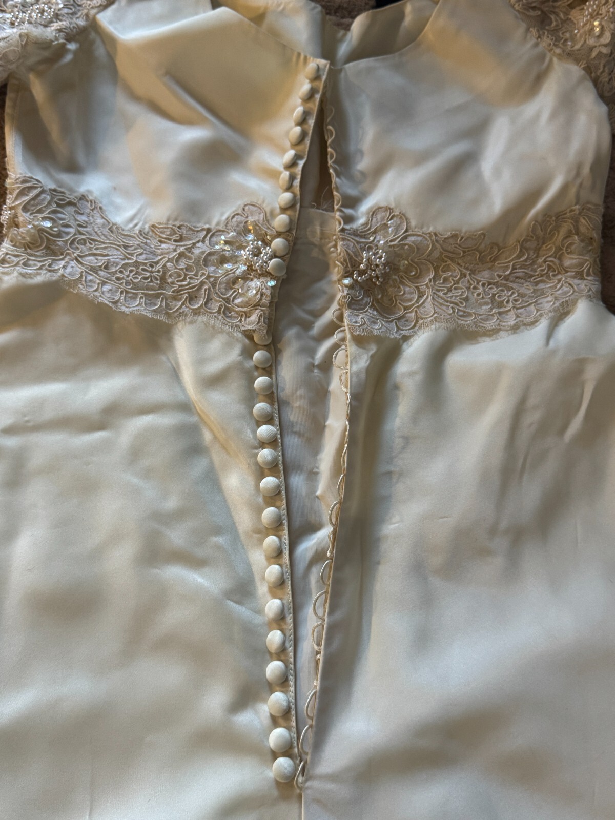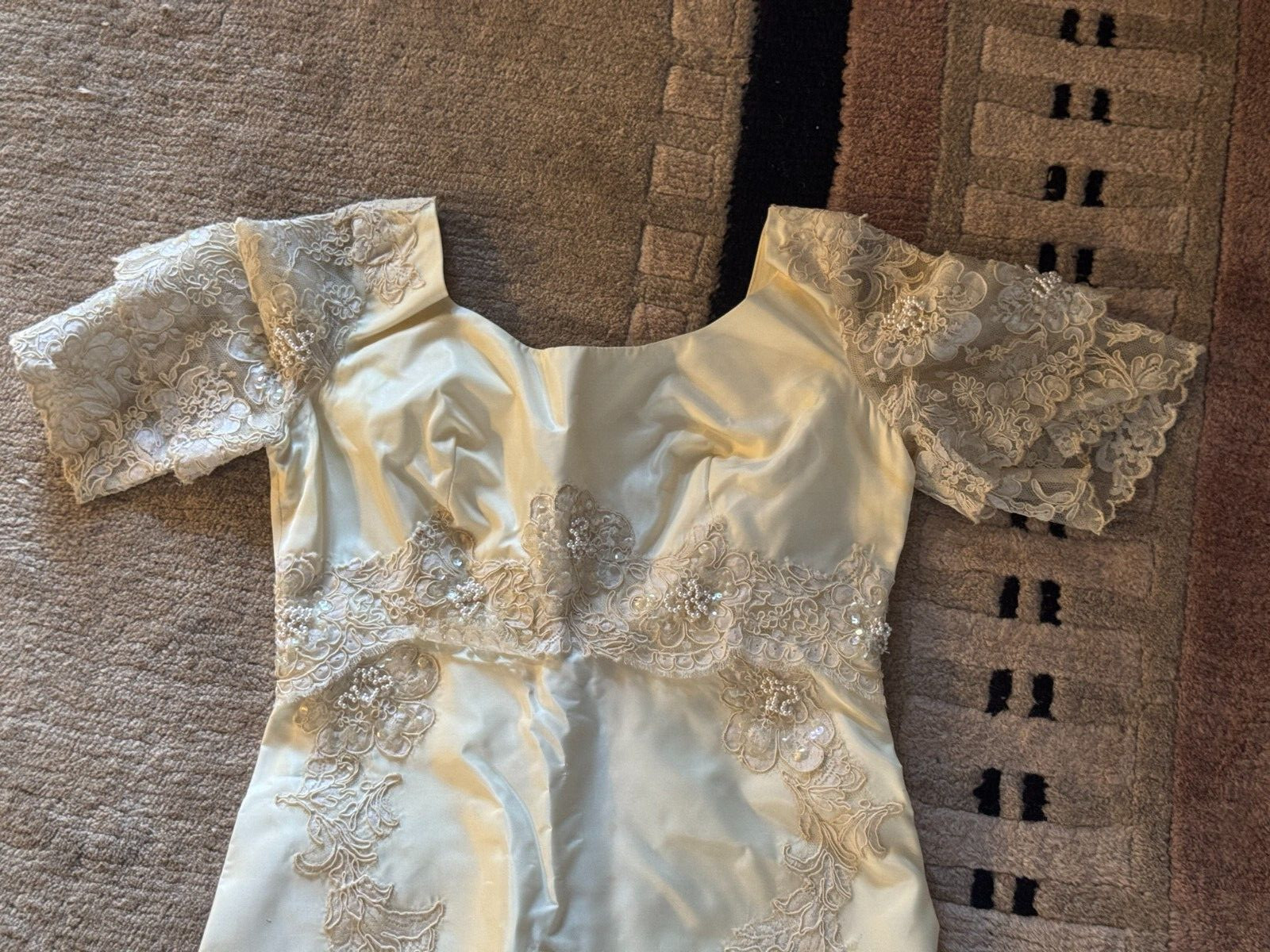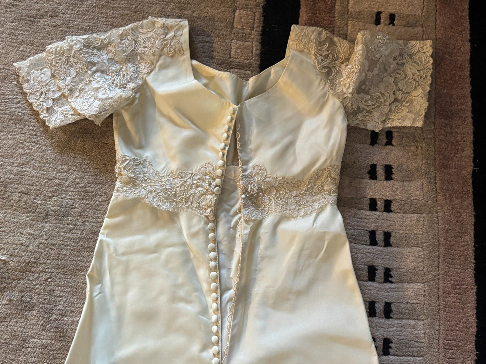 как выглядит 1900s VINTAGE UNION MADE WEDDING DRESS AND TRAIN- OFF WHITE / IVORY COLOR фото