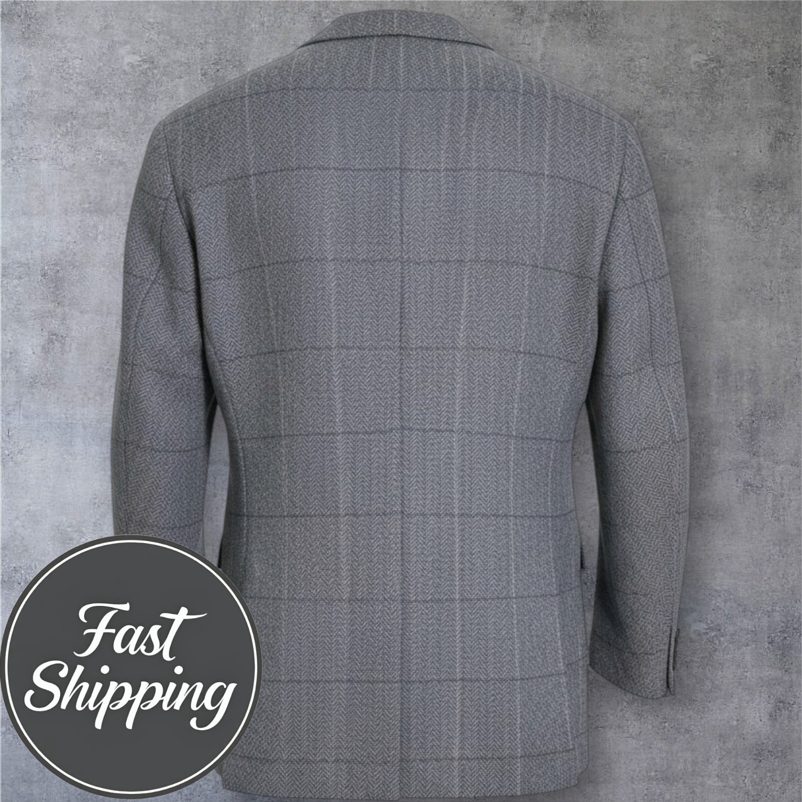 как выглядит CRICKETEER Vintage Mens Blazer Sport Coat Suit Jacket 42R Tweed Wool Gray Plaid фото