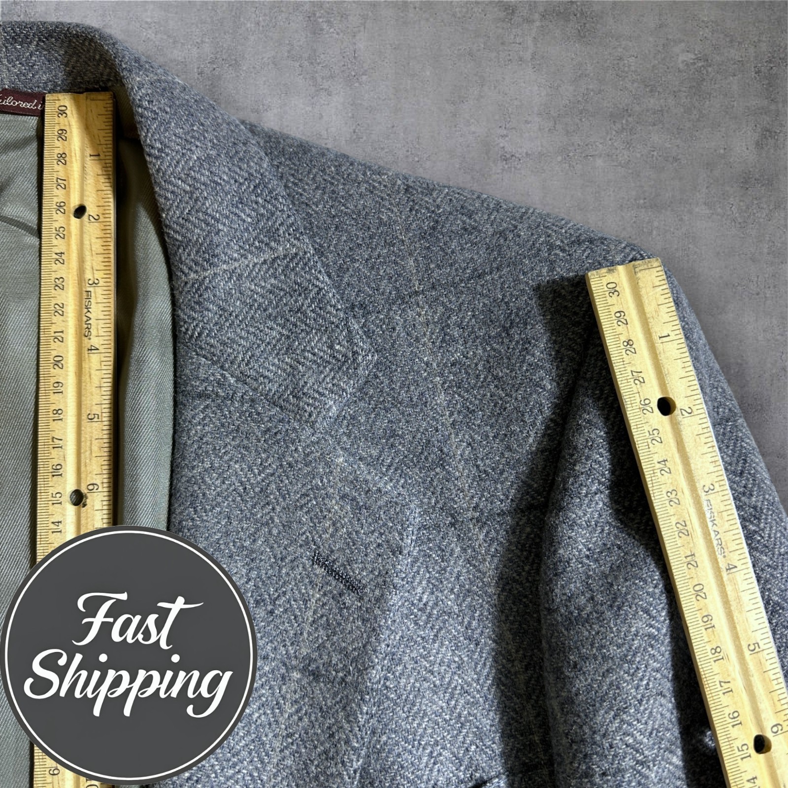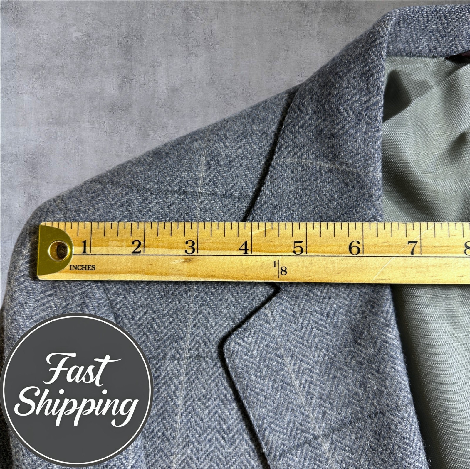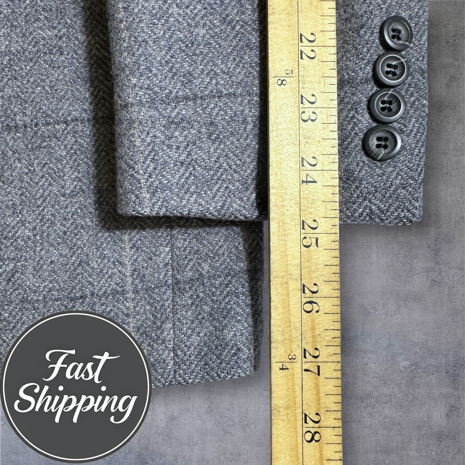 CRICKETEER Vintage Mens Blazer Sport Coat Suit Jacket 42R Tweed Wool Gray Plaid