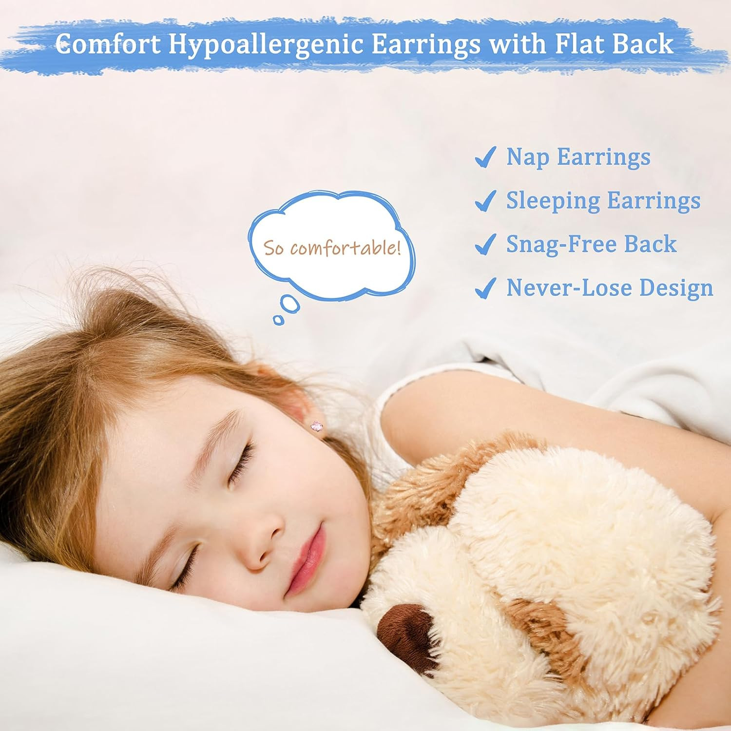 Hypoallergenic Earrings for Girls Toddler Surgical Steel Screw Flat Back Earring