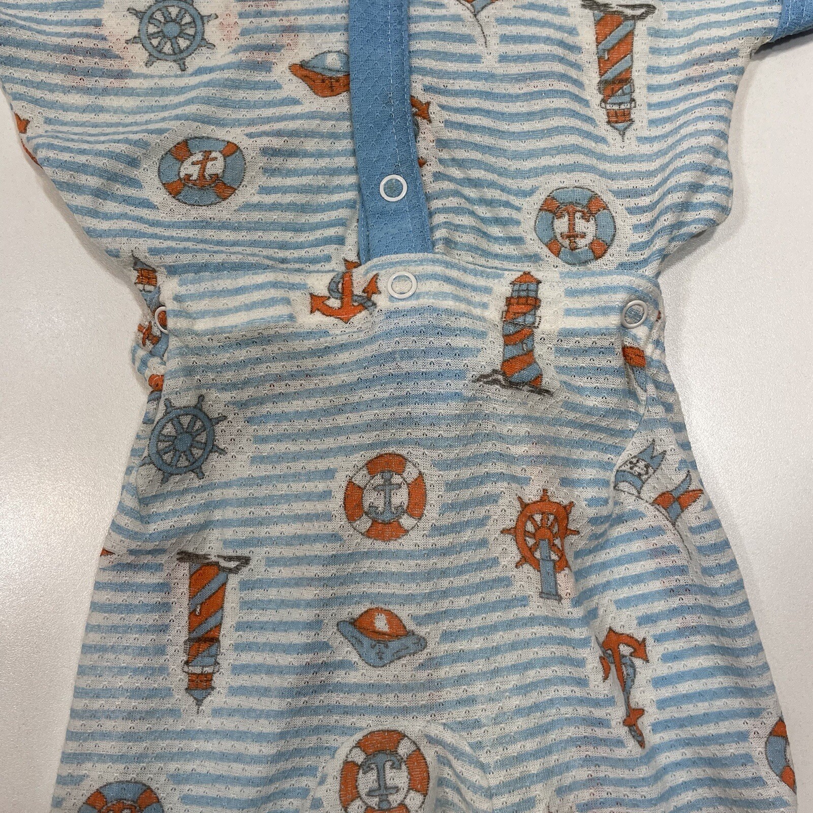 как выглядит Vintage One Piece Bodysuit Pajama Set PJ s Carters Unisex 1 Year Lighthouse Blue фото