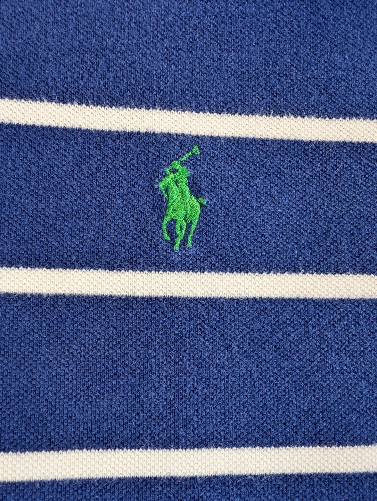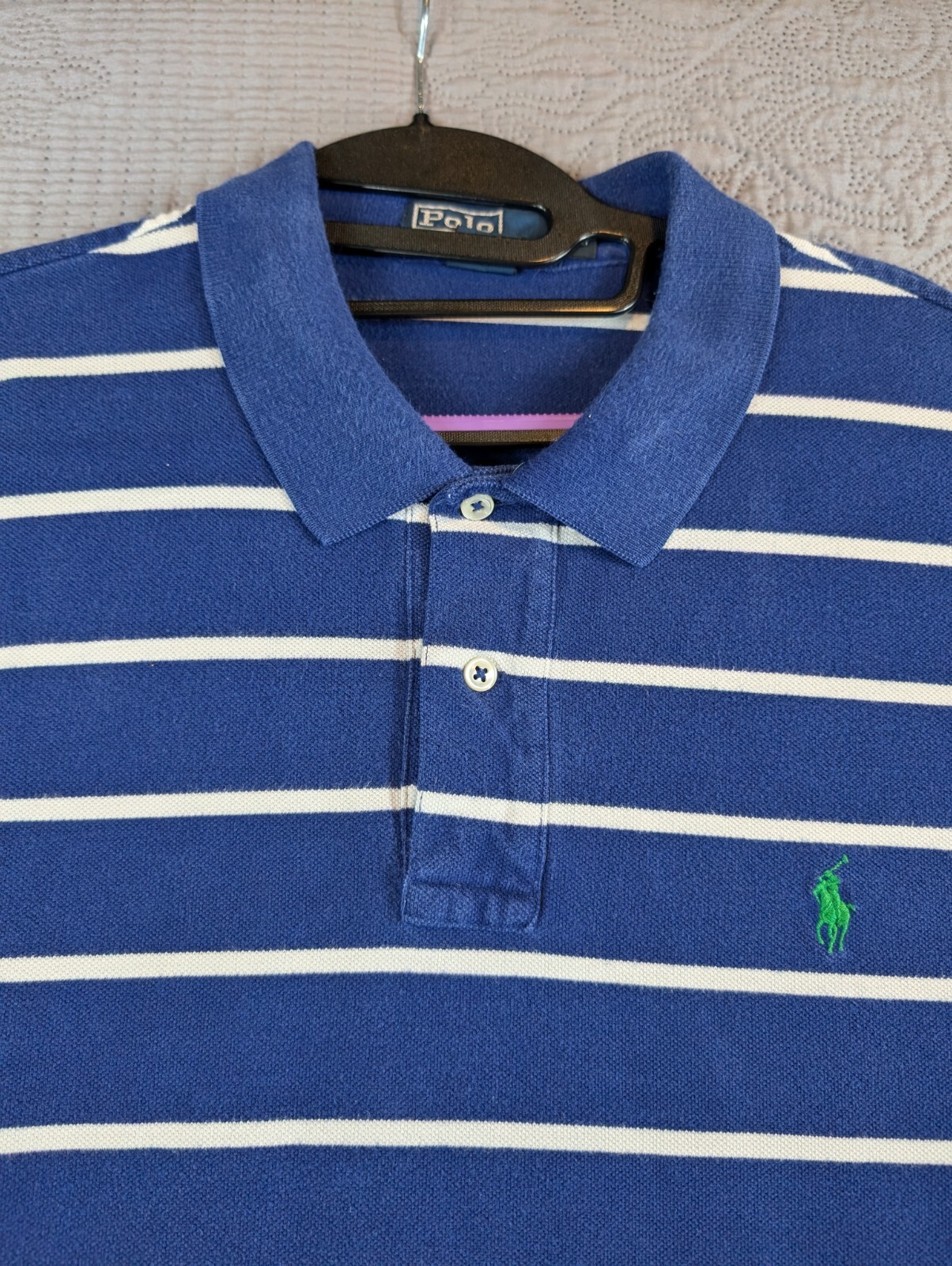 Ralph Lauren Men's XL Short Sleeve Polo Shirt Blue White Striped 100 Cotton