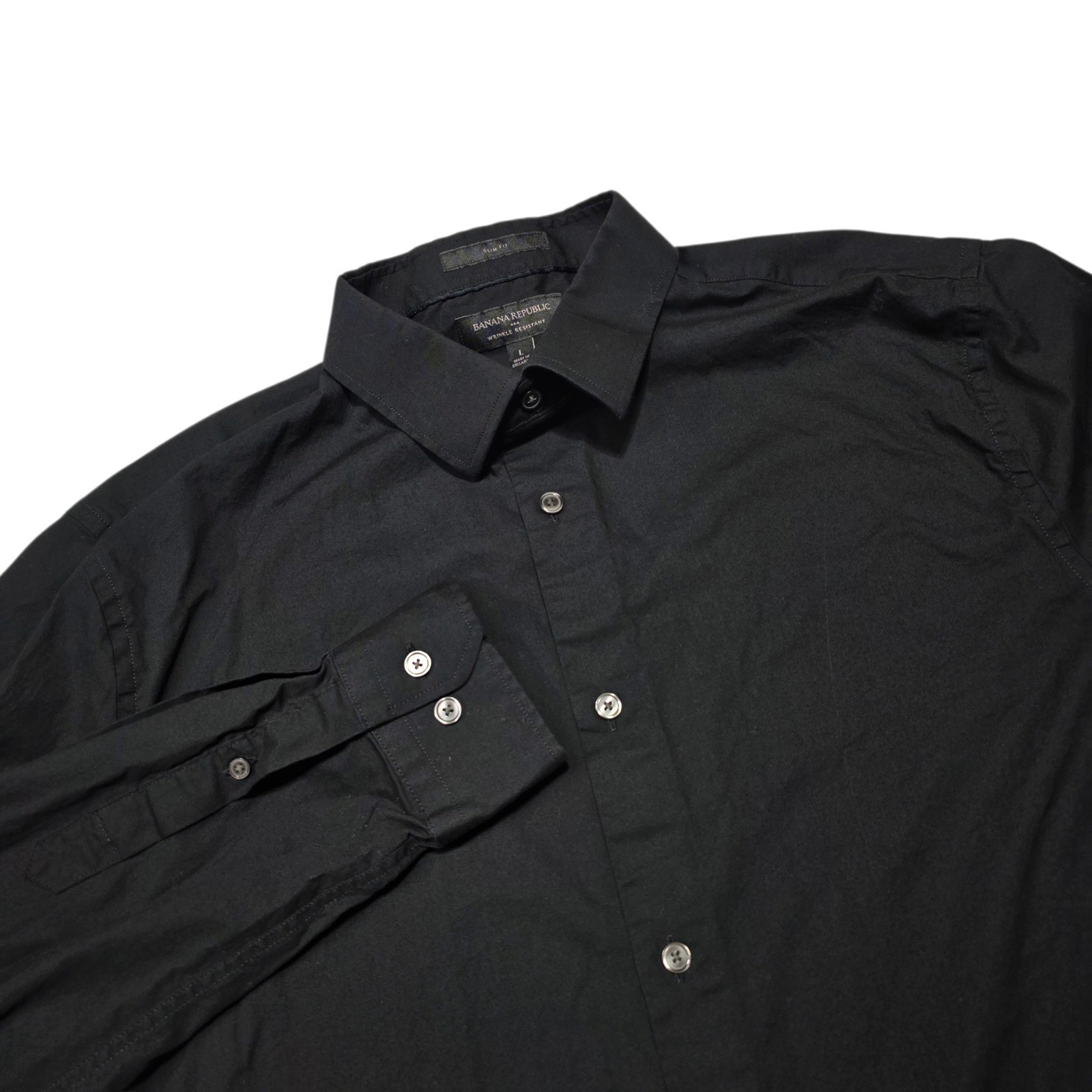 Banana Republic Button Up Shirt Mens L Black Slim Fit Wrinkle Resistant Cotton
