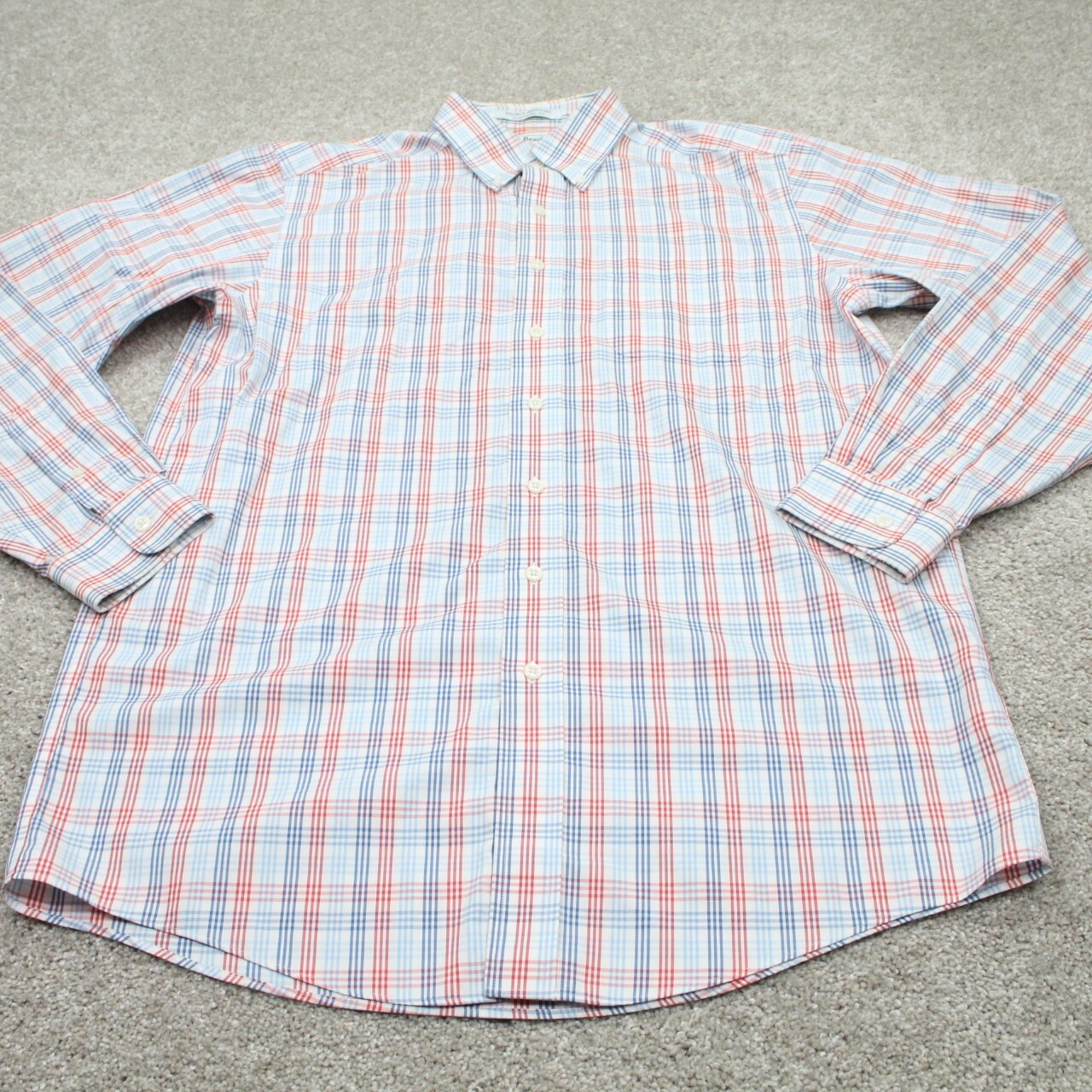 как выглядит LL Bean Shirt Mens 15 1/2, 36 Red/Blue Wrinkle Resistant Traditional Fit L/S фото