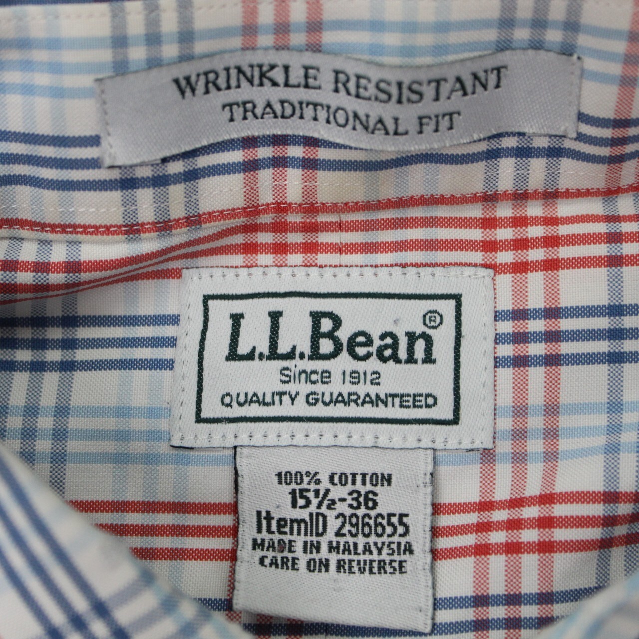 LL Bean Shirt Mens 15 1/2, 36 Red/Blue Wrinkle Resistant Traditional Fit L/S