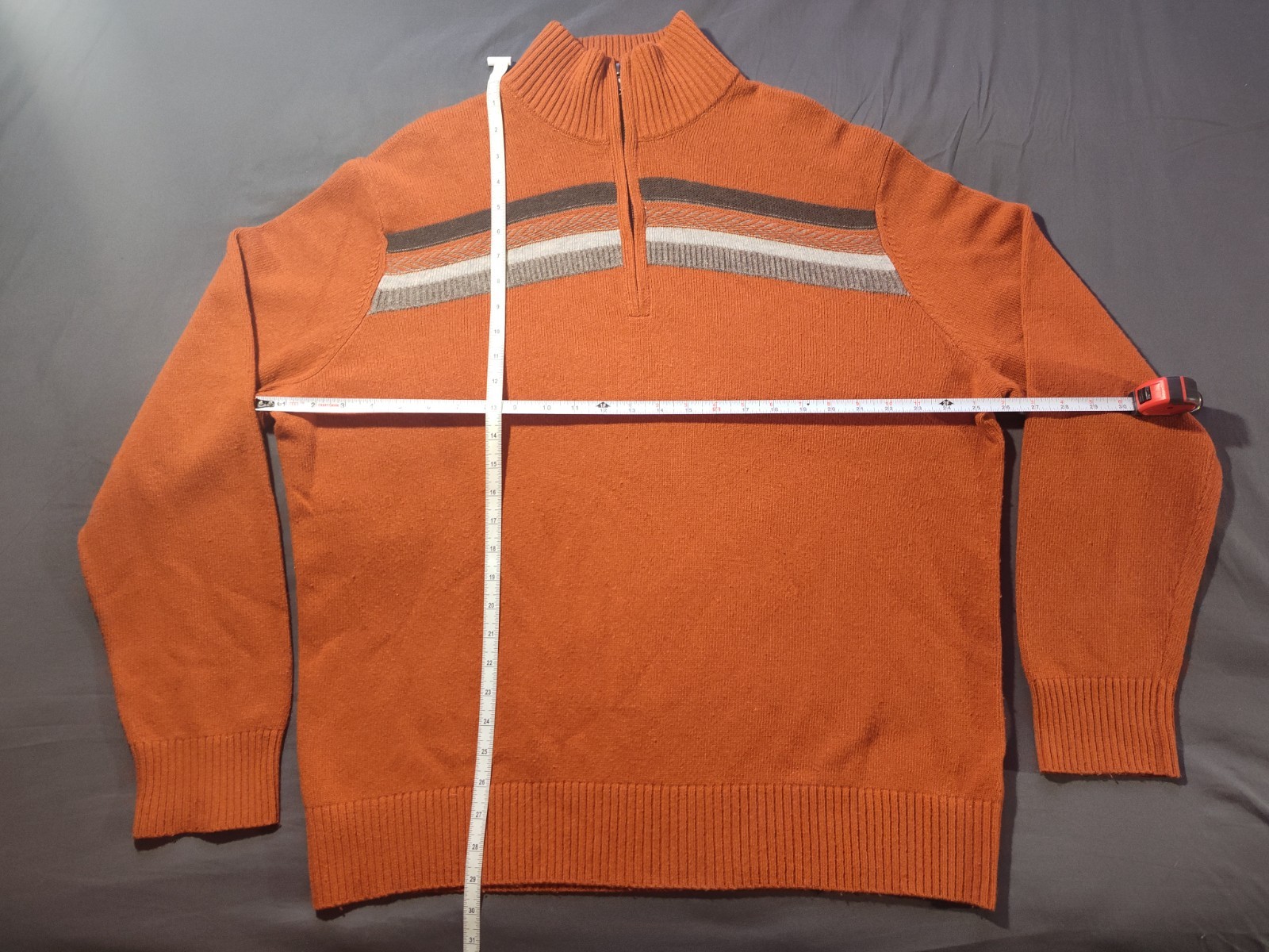 Banana Republic Men's XL Quarter Zip Sweater Orange Striped Italian Yarn Pullove
