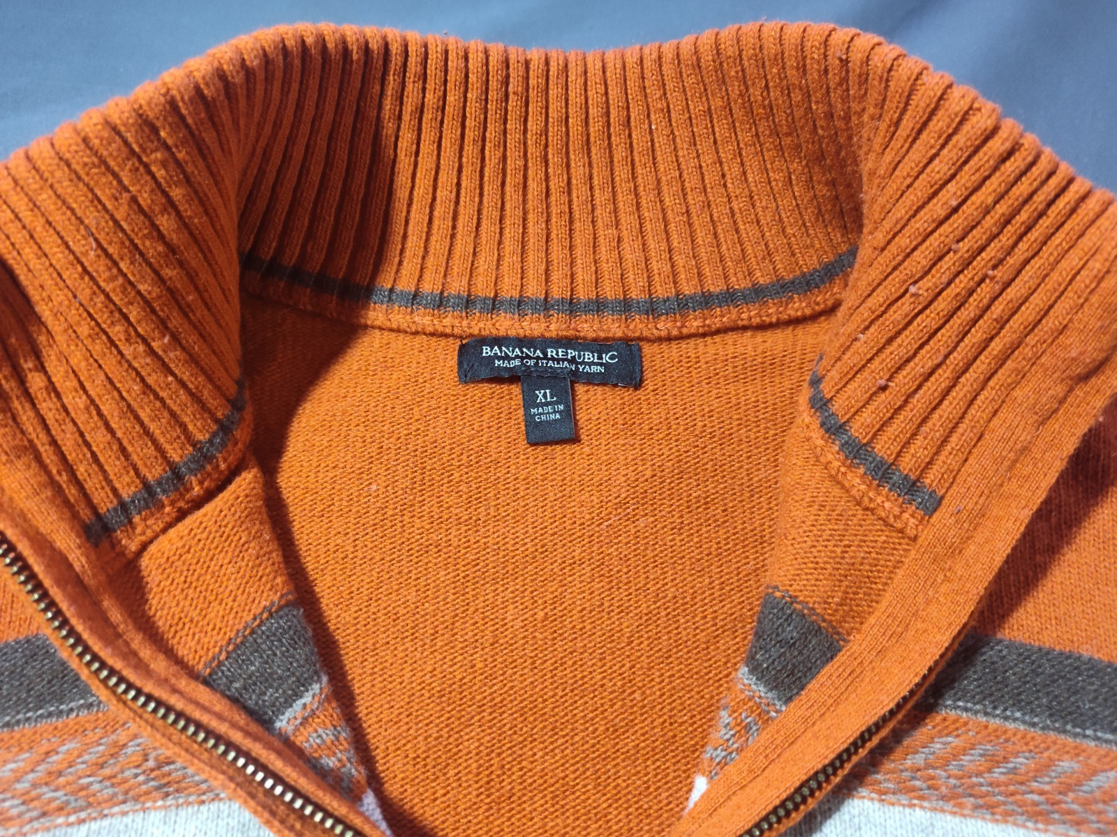 как выглядит Banana Republic Mens XL Quarter Zip Sweater Orange Striped Italian Yarn Pullove фото