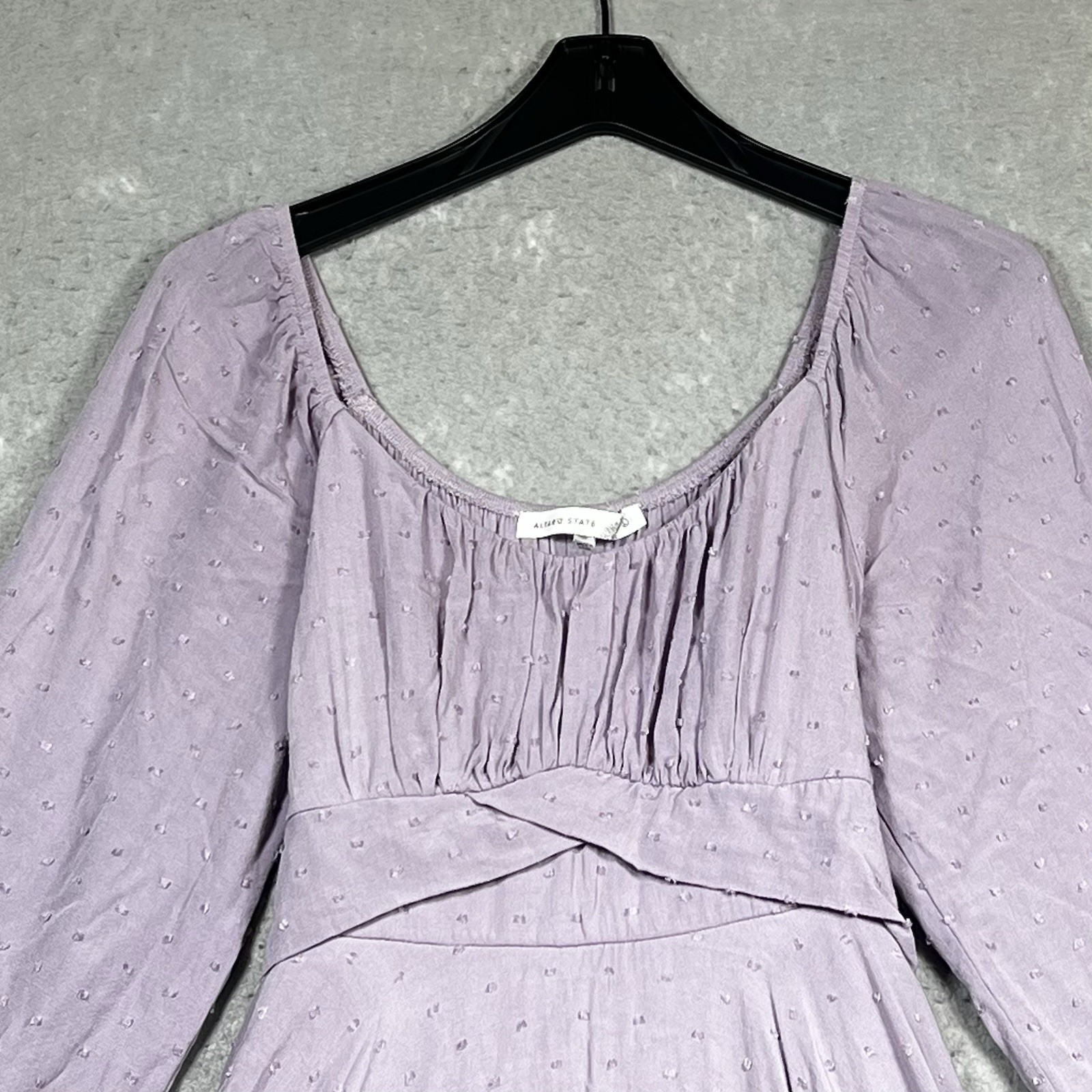 Altar'd State Romper Women s Size Large Purple Ruffle Long Sleeve Tie Rayon