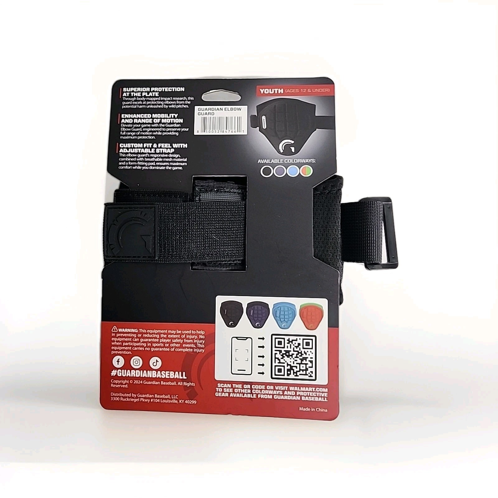 Guardian Youth Elbow Guard Black Foam Mesh Adjustable Strap Lightweight Baseball