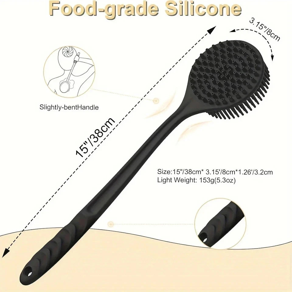 Long Handle Silicone Back Scrubber, Double Sided Bath Body Brush for Shower Men