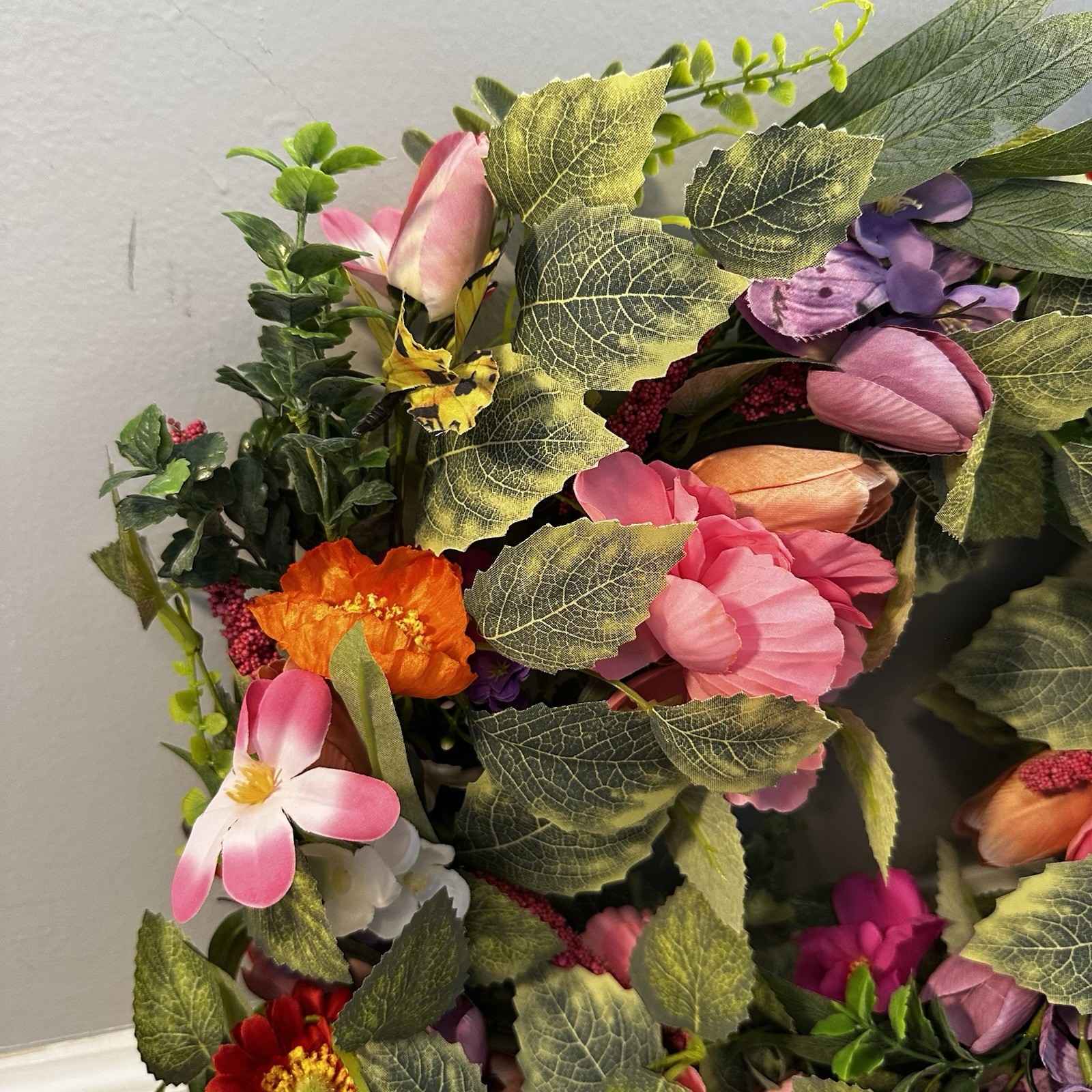 Spring Floral Wreath 14 Front Door Decor Pink Green Summer Farmhouse