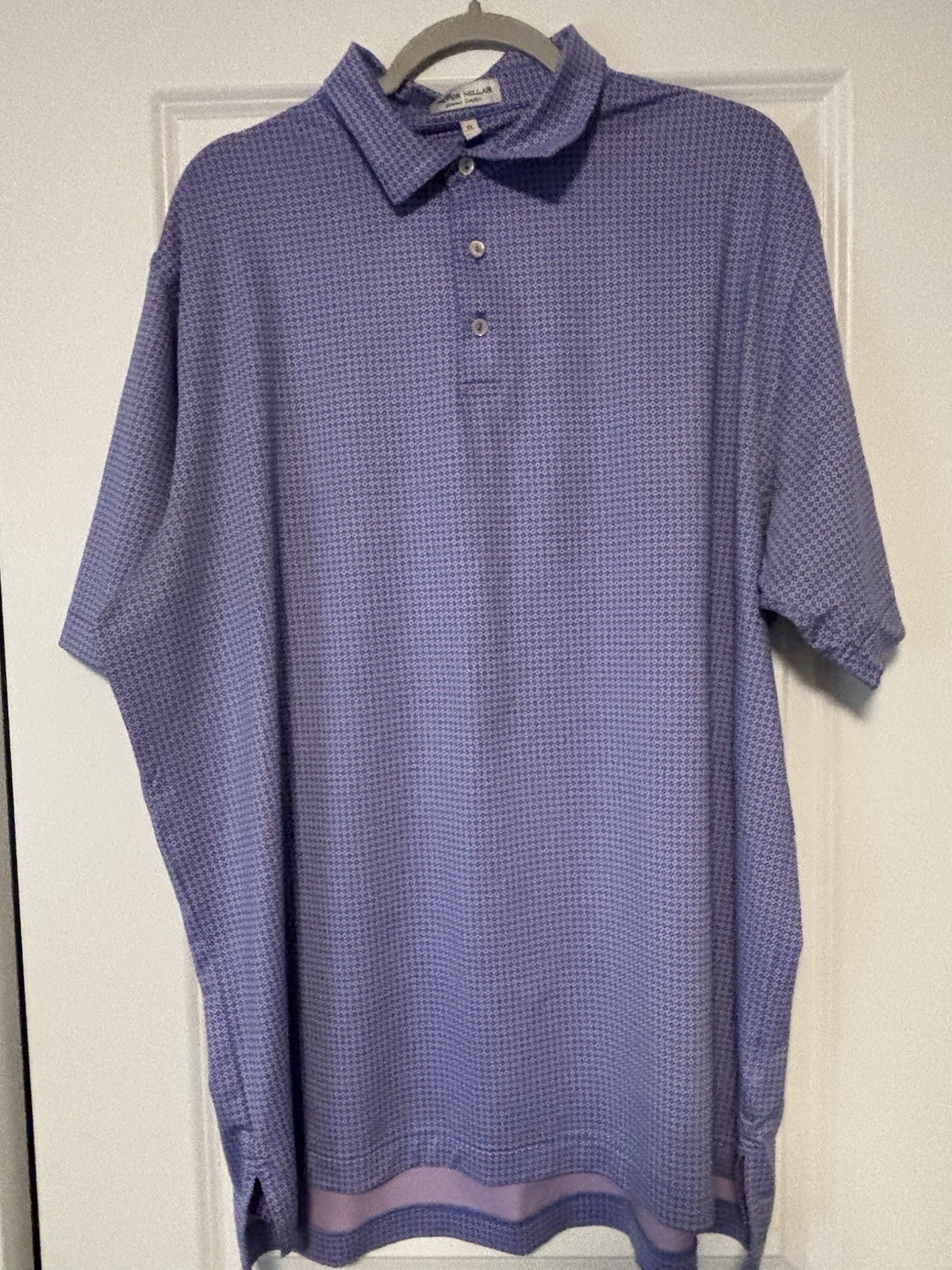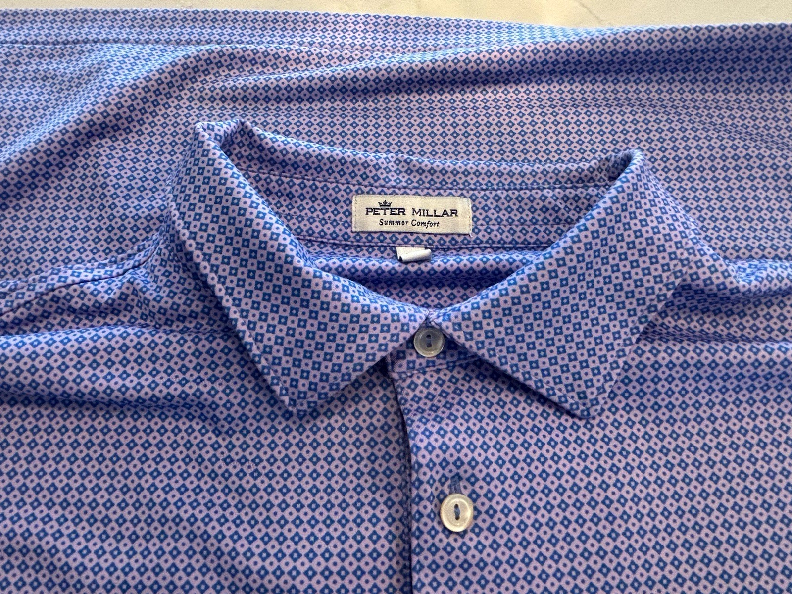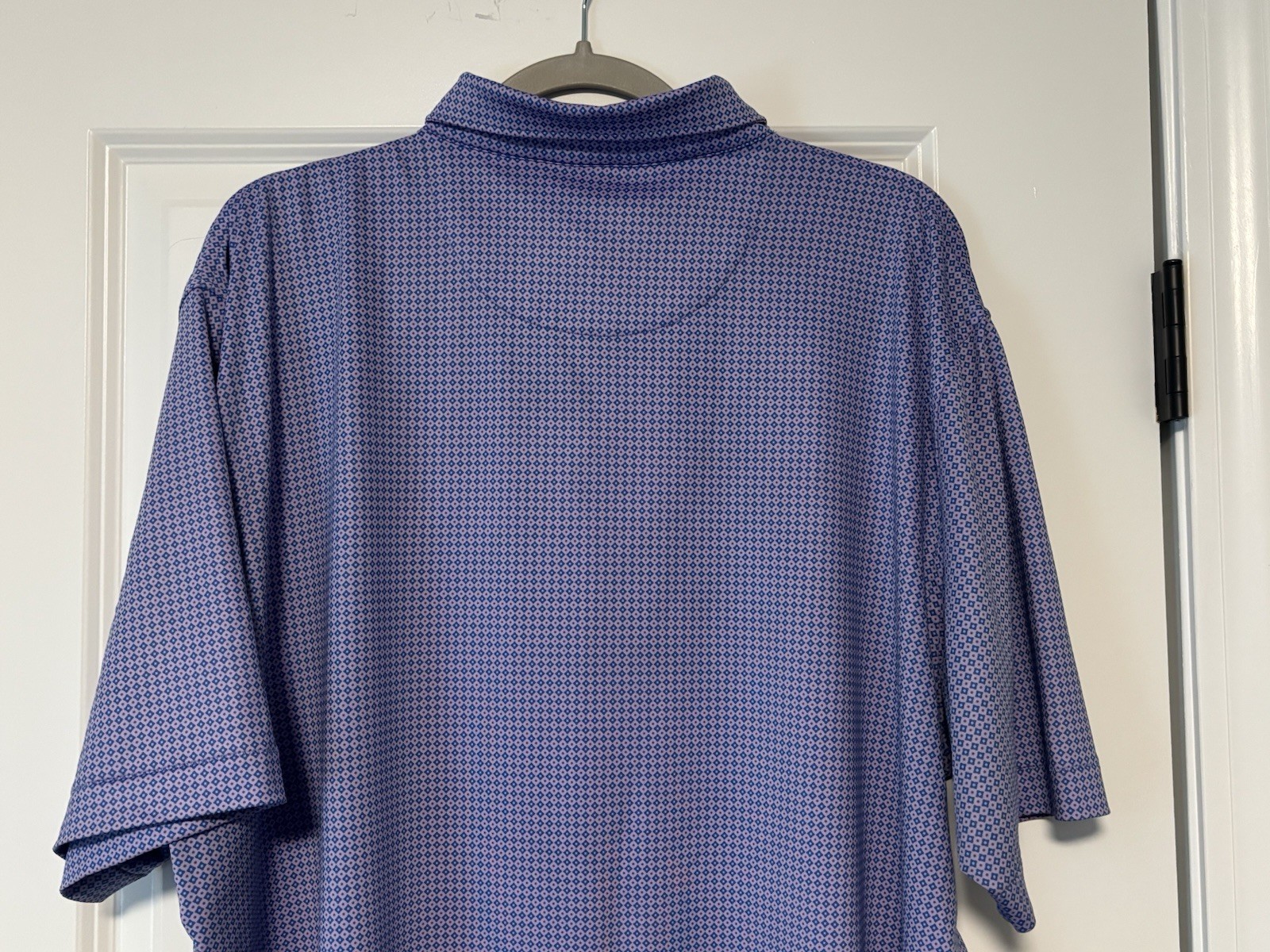 как выглядит Peter Millar Summer Comfort Polo Men Large XL Pink Purple Geometric Shapes фото