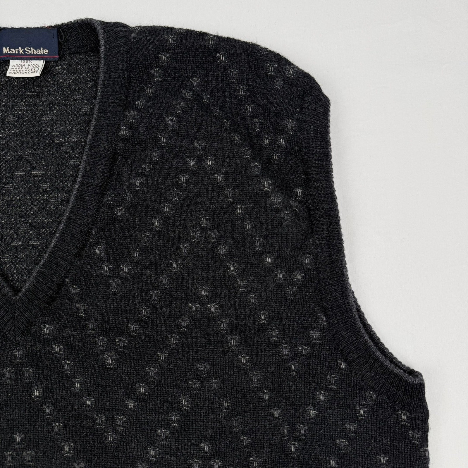Vintage 90s Virgin Wool Sweater Vest Charcoal V-Neck Mark Shale Size L
