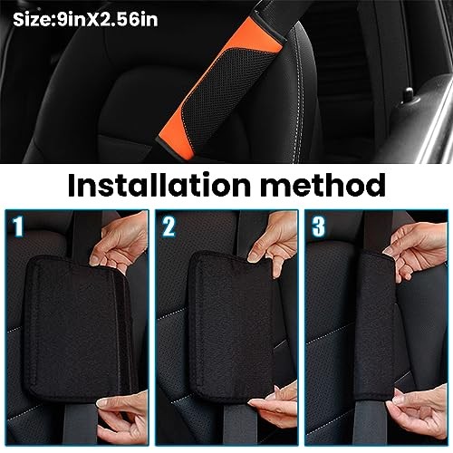 Car Seat Belt Pads Cover, 2 Pack Leather Mesh Universal Seatbelt Orange