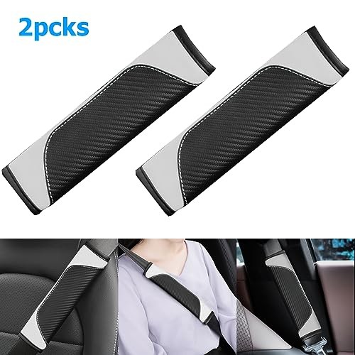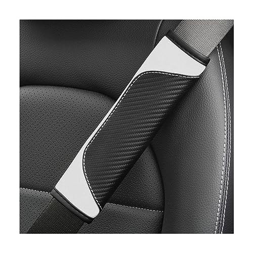 AUCELI 2PCS Car Seat Belt Cover, Carbon Fiber Seatbelt Shoulder Black/White