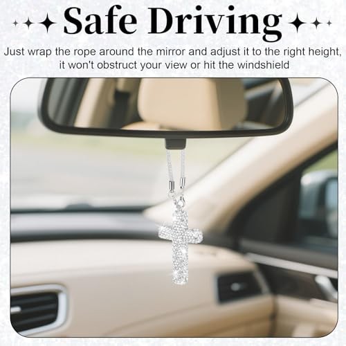 Cross for Car Mirror Hanging, Bling Cars Pendant Charm, Double-Sided White
