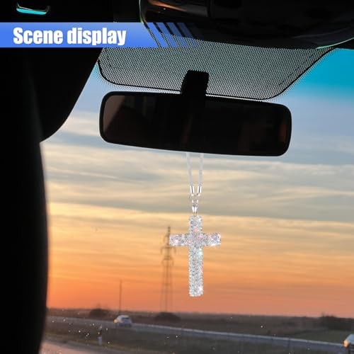 Bling Cross Car Hanging Ornament, Crystal Rhinestone Car Rearview Mirror White