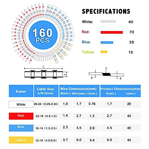 PCS Solder Seal Wire Connectors Kit, Waterproof Solderless Heat Shrink Butt 160
