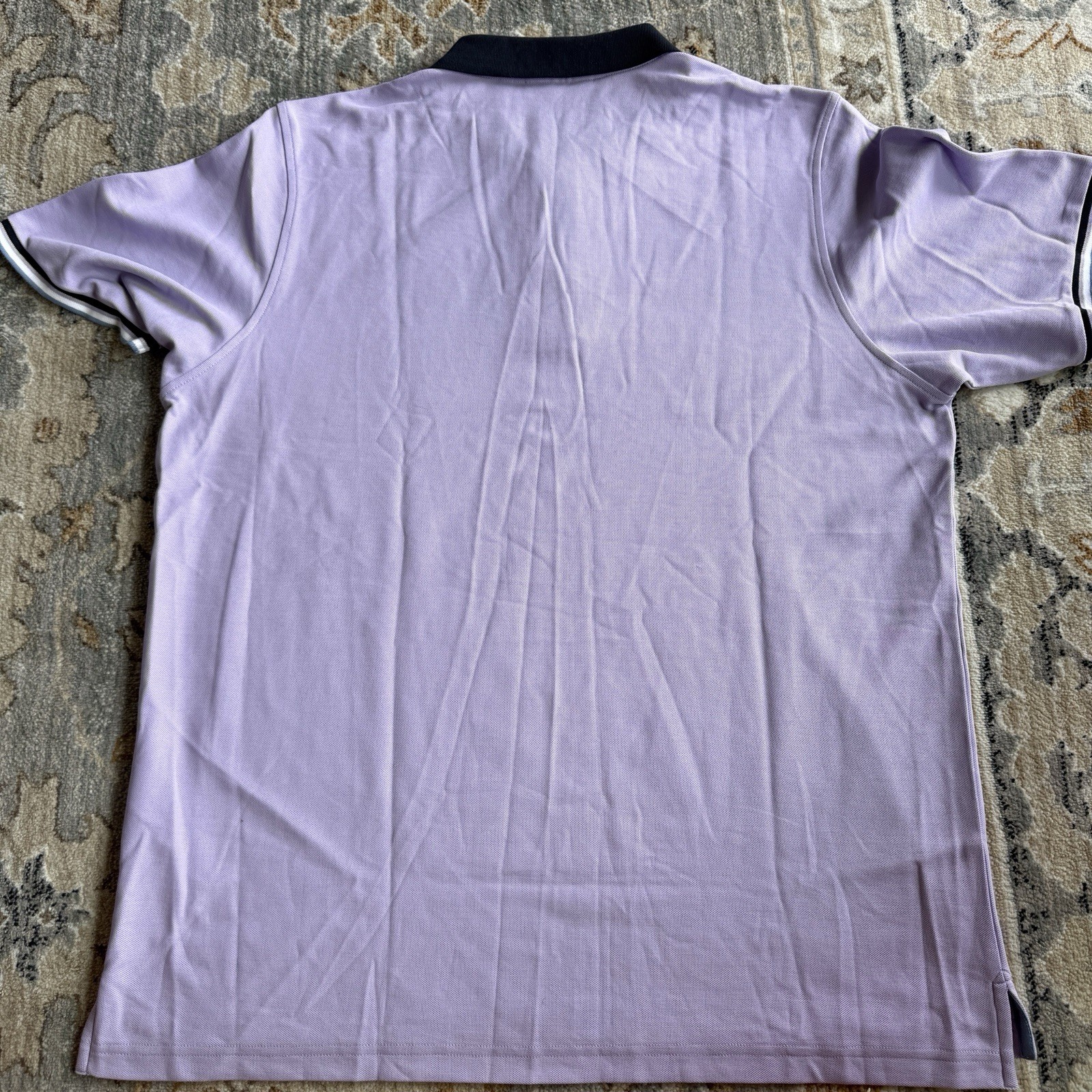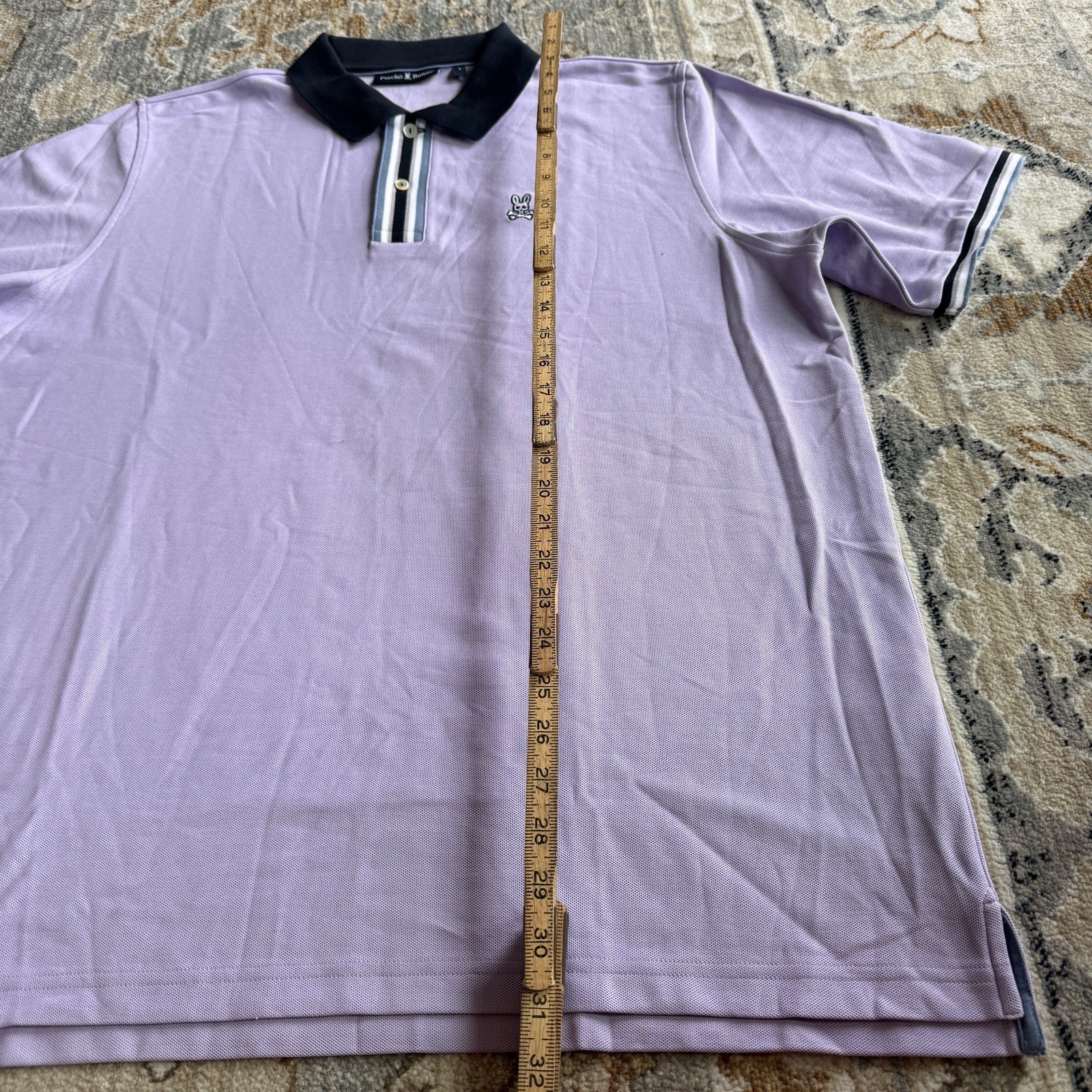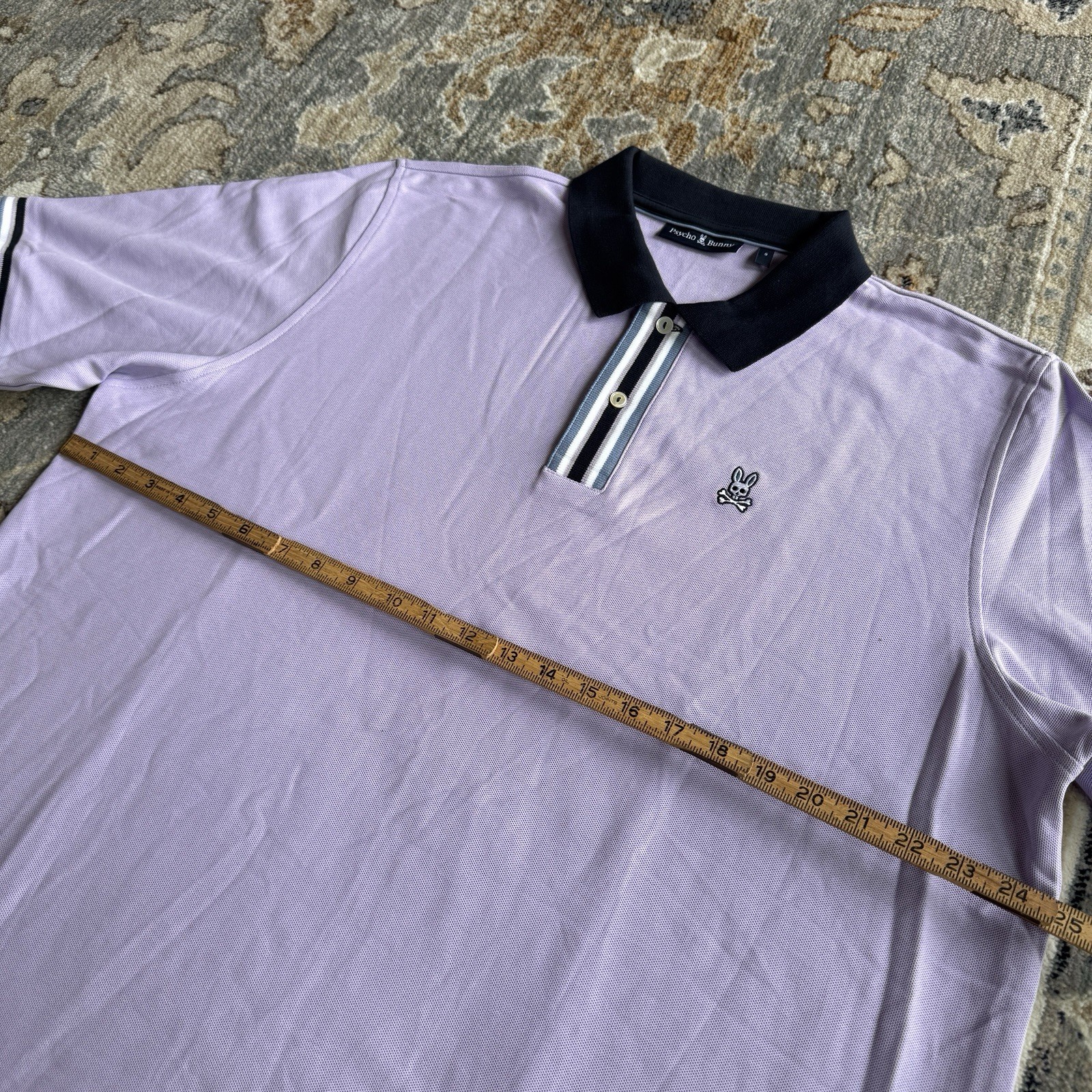 Psycho Bunny Men's Lavender Short Sleeve Polo Shirt Size 9 XL Striped Trim Golf