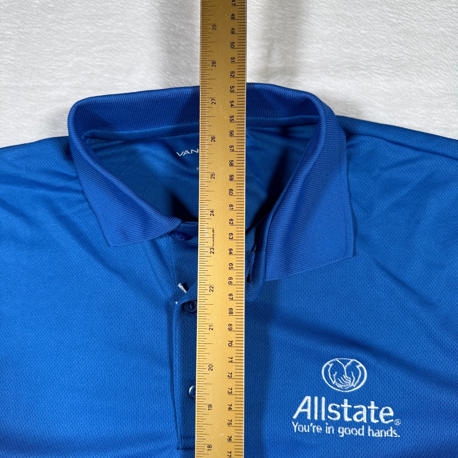 как выглядит Vansport Allstate Polo Shirt Mens Medium Blue Short Sleeve Collared Employee фото