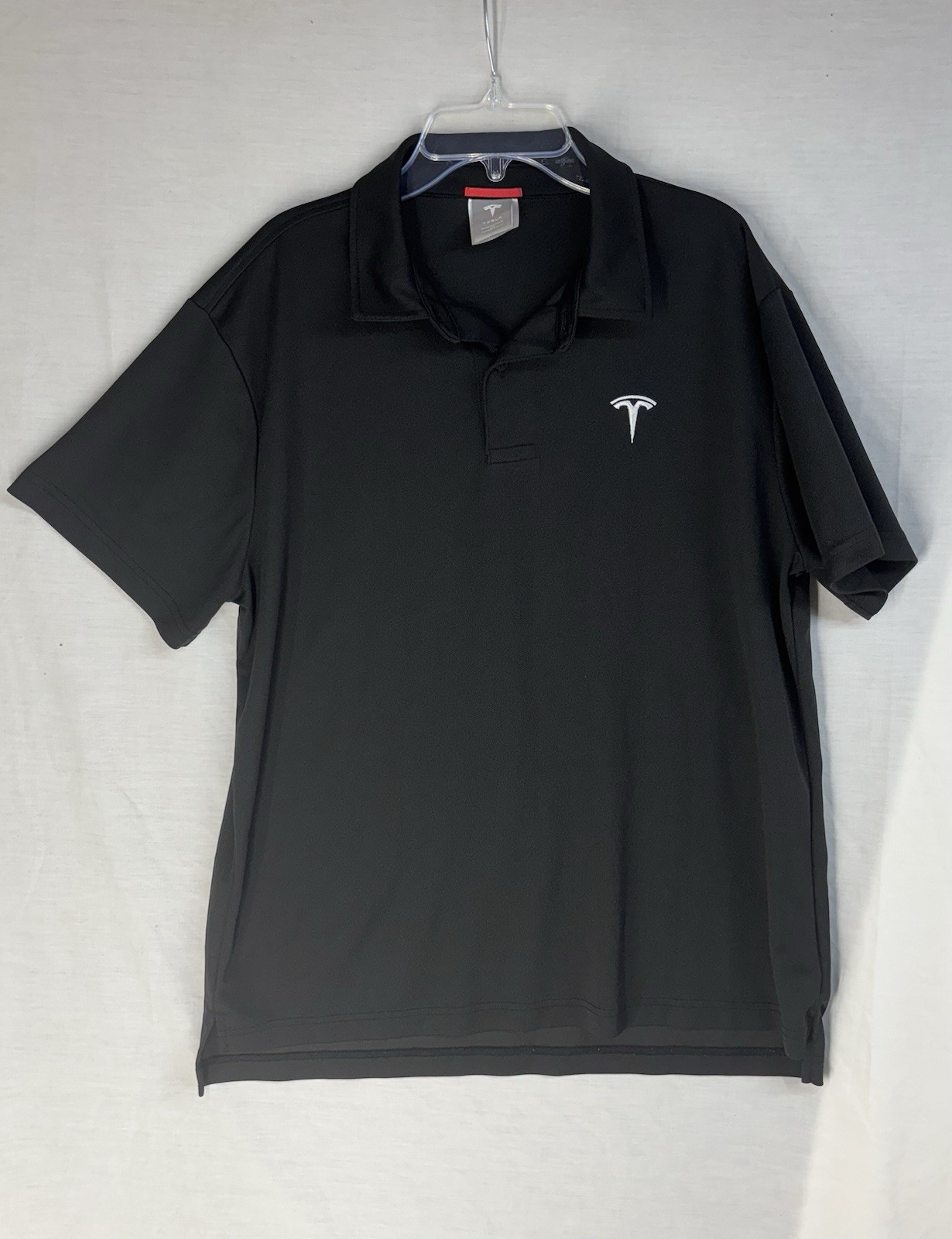 как выглядит Tesla Motors Black Collared Short Sleeve Polo Shirt Logo Mens Size Large фото