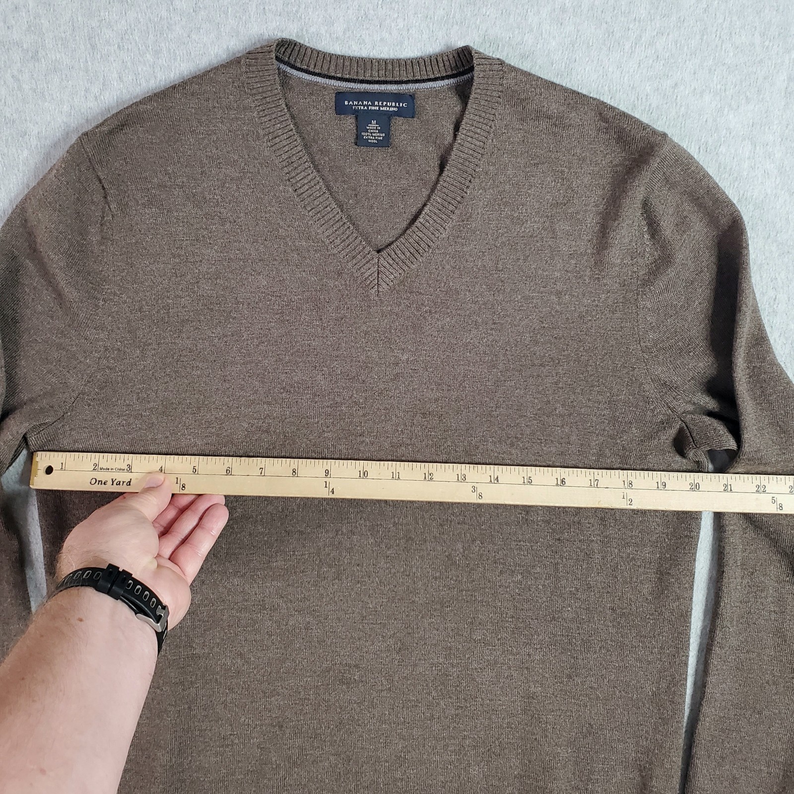 как выглядит Banana Republic Sweater Mens Med Brown Extra Fine Merino Wool Pullover V Neck фото