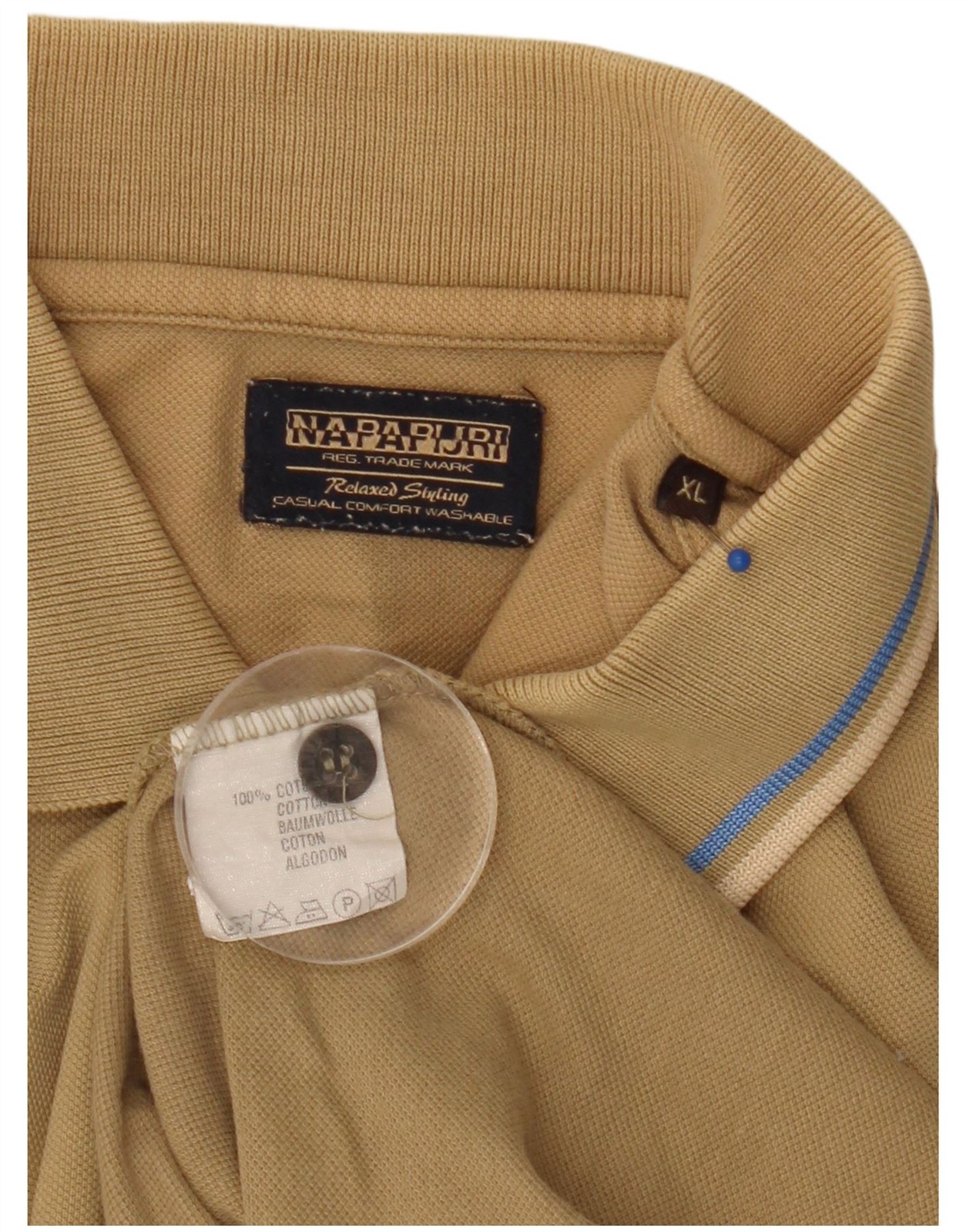 как выглядит NAPAPIJRI Mens Polo Shirt XL Beige Cotton DP10 фото