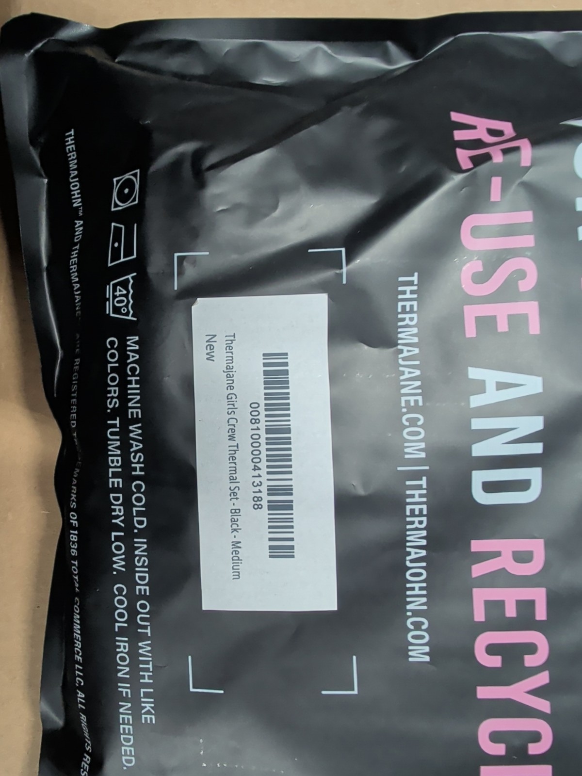 Thermajane Girls Medium - 2 Piece Long Sleeve Thermal Underwear Set - Black