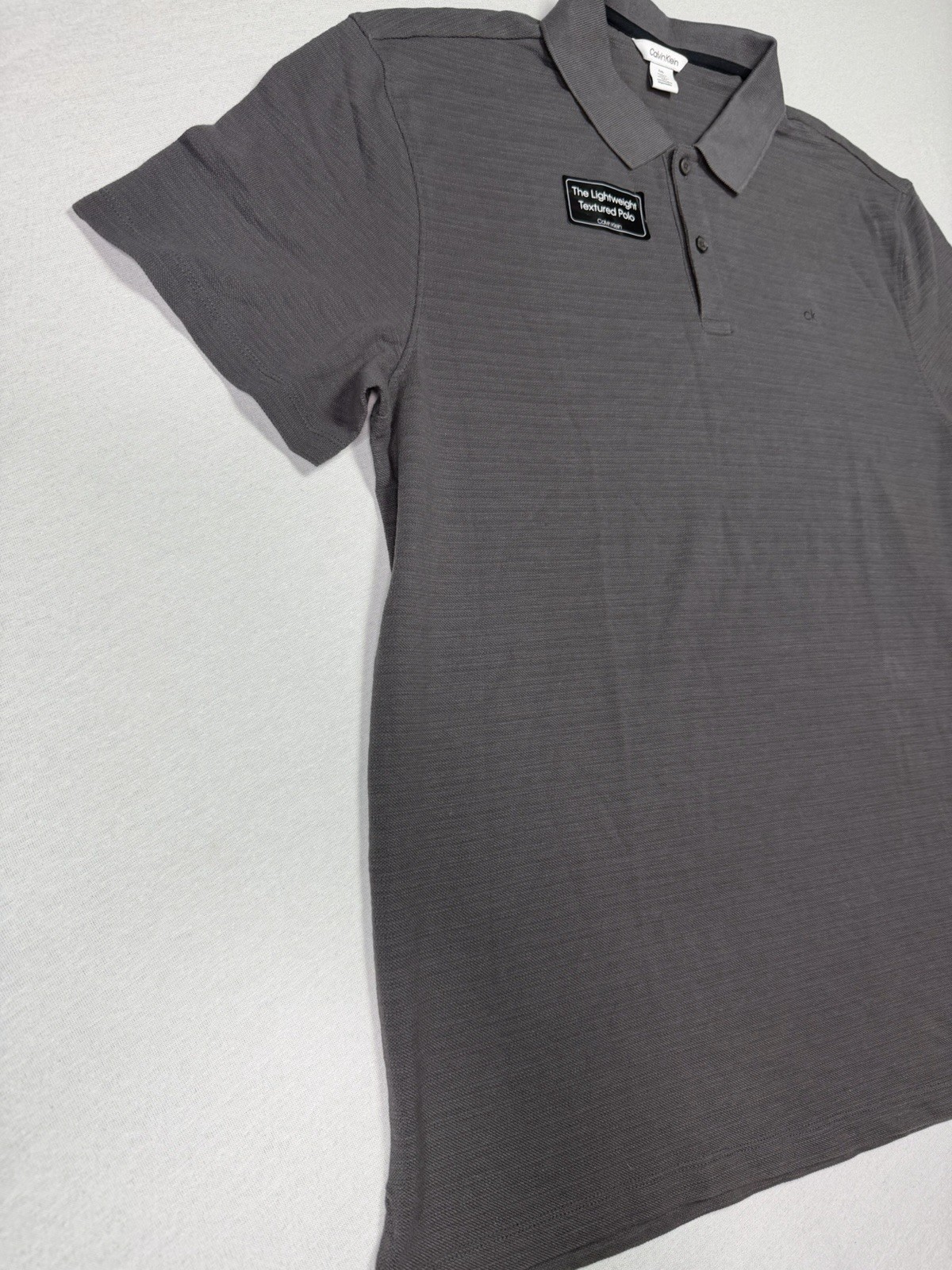 Calvin Klein Lightweight Textured Polo Gray CK Logo Men s LG Shirt