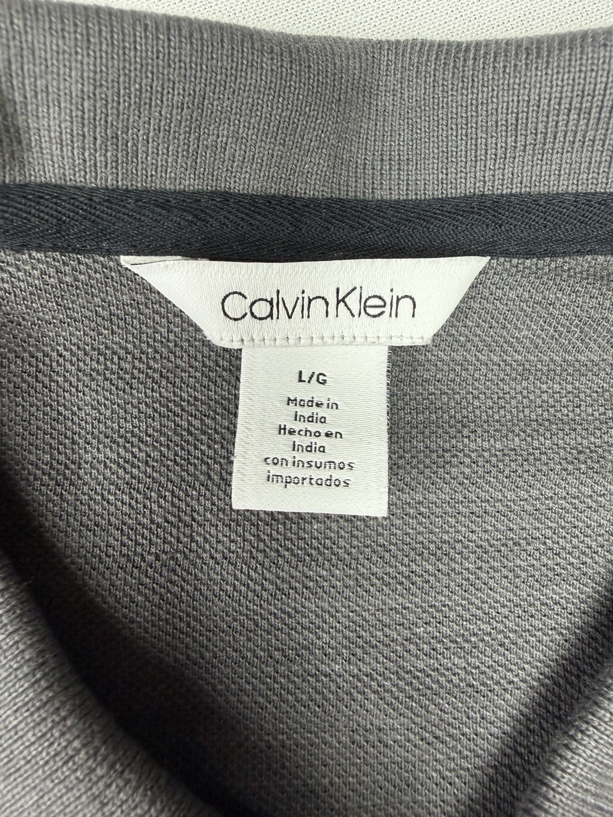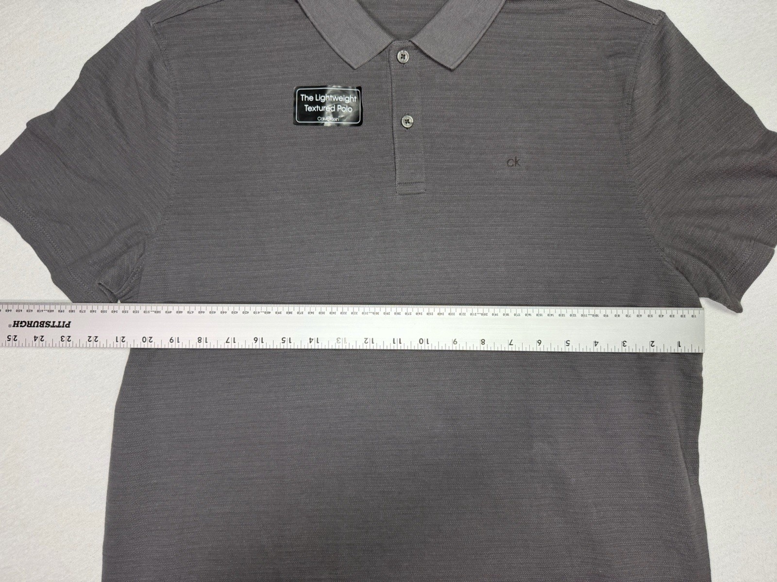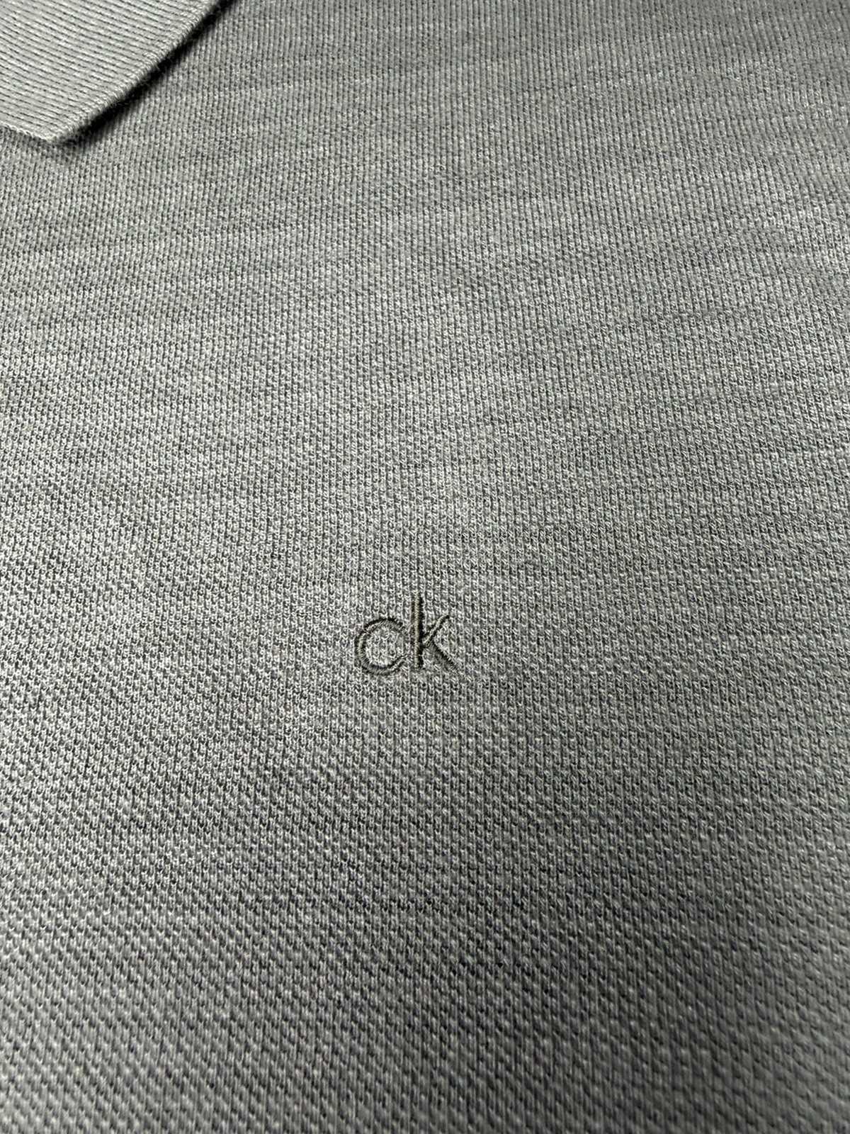 как выглядит Calvin Klein Lightweight Textured Polo Gray CK Logo Men s LG Shirt фото