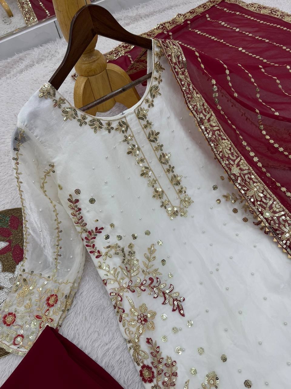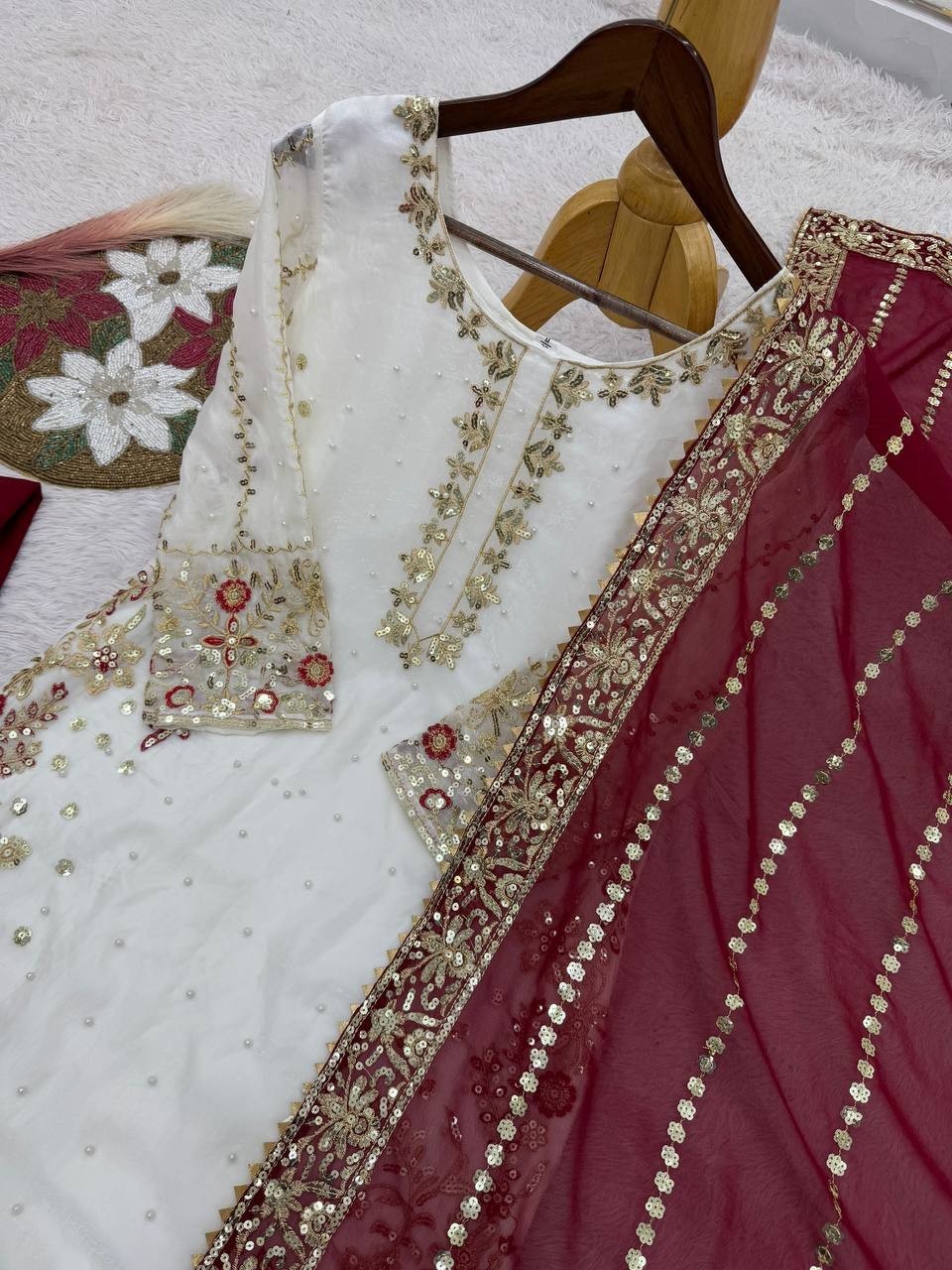 как выглядит Heavy Reception Wear White Fancy Heavy Silk Salwar Kameez With Dupatta For Women фото