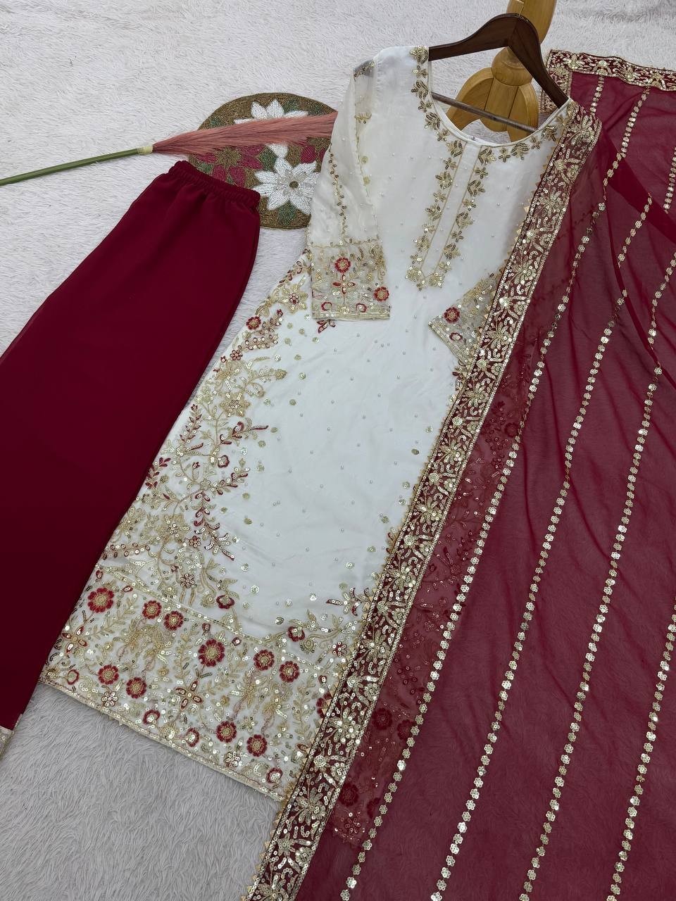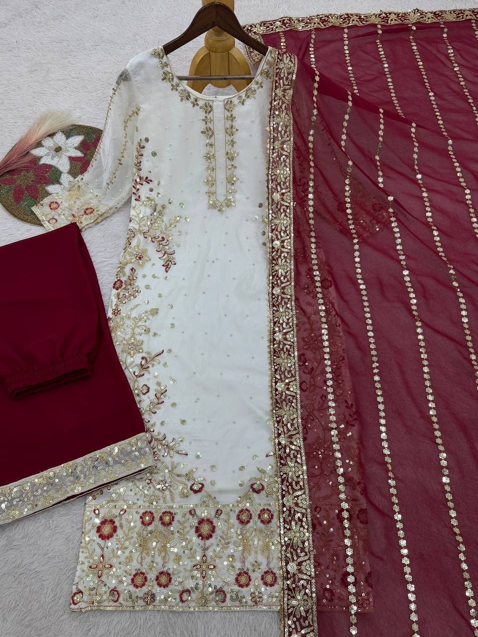 Heavy Reception Wear White Fancy Heavy Silk Salwar Kameez With Dupatta For Women