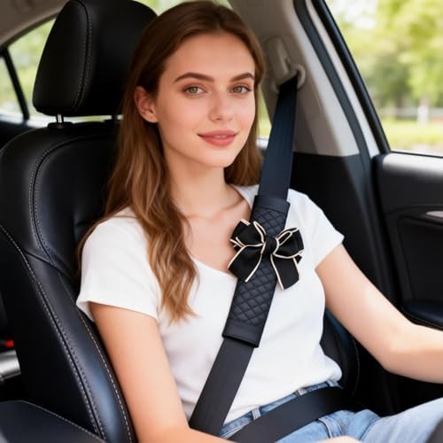 Cute Bow Leather Car Seat Belt Cover Pads,Pcs 4 Pcs Seat Belt Cover 2 Black