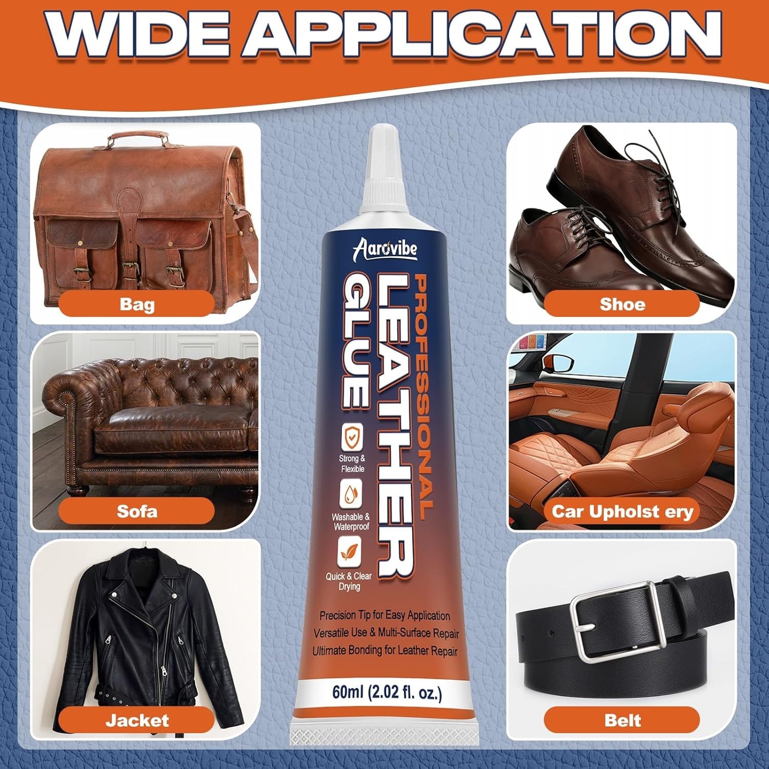 Leather Glue, 60ml Strong Flexible Leather Adhesive Waterproof, Quick-Dry