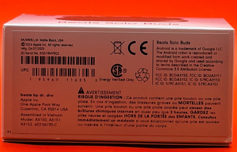 Beats by Dr. Dre Solo Buds Mattle Black In Ear Headphones MUVW3LL/A- NEW Genuine