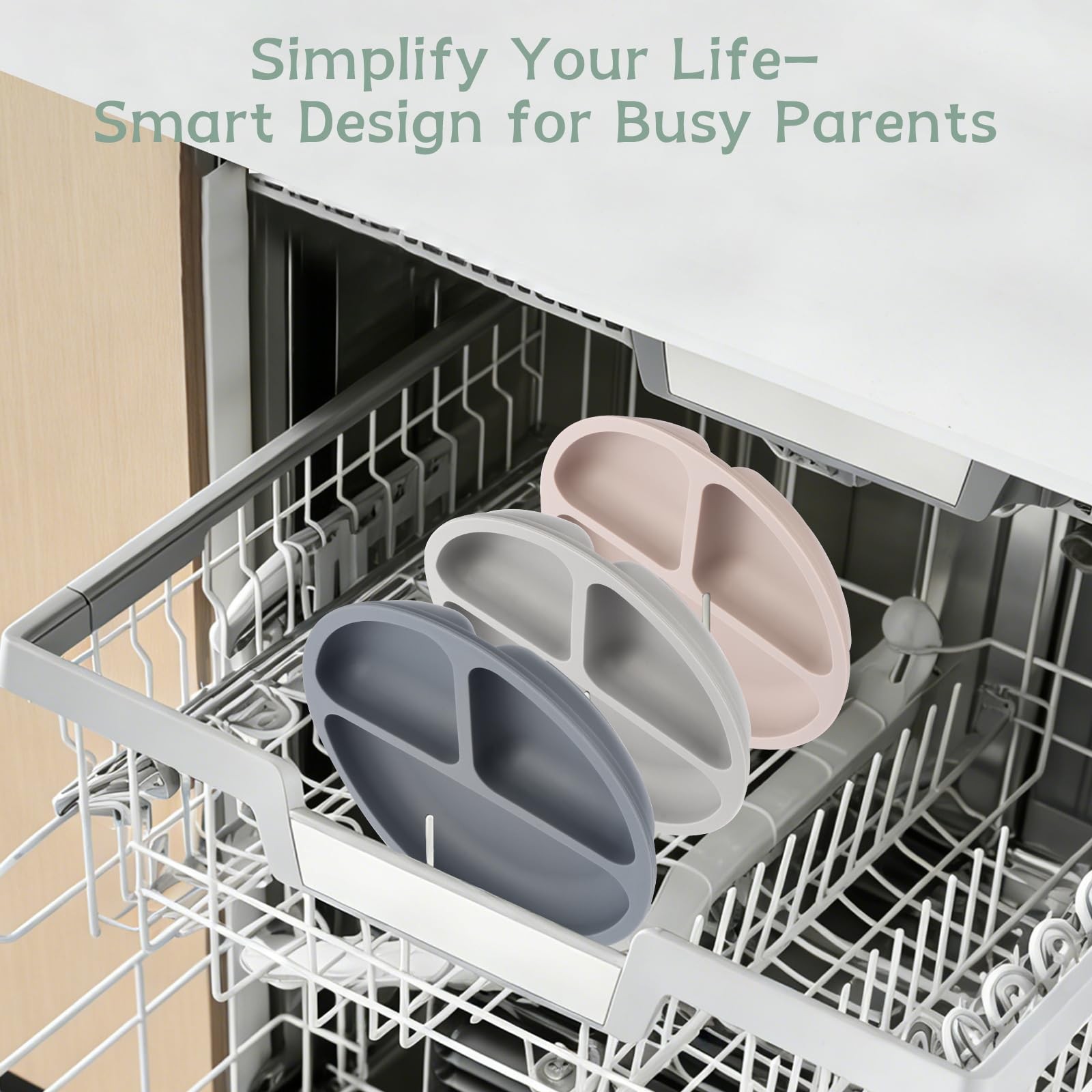 Eascrozn Toddler Plates, 3 Pack Divided Baby Plates with Medium, Gray
