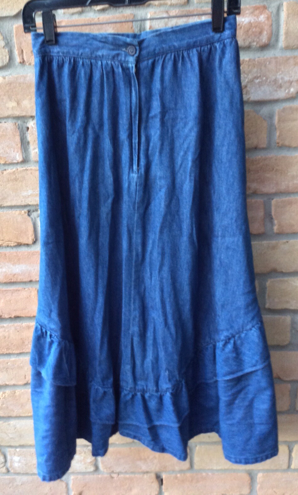 VTG 80s Blue Denim Prairie Skirt Sz S 26W Ruffle Country Western Rustic Farm