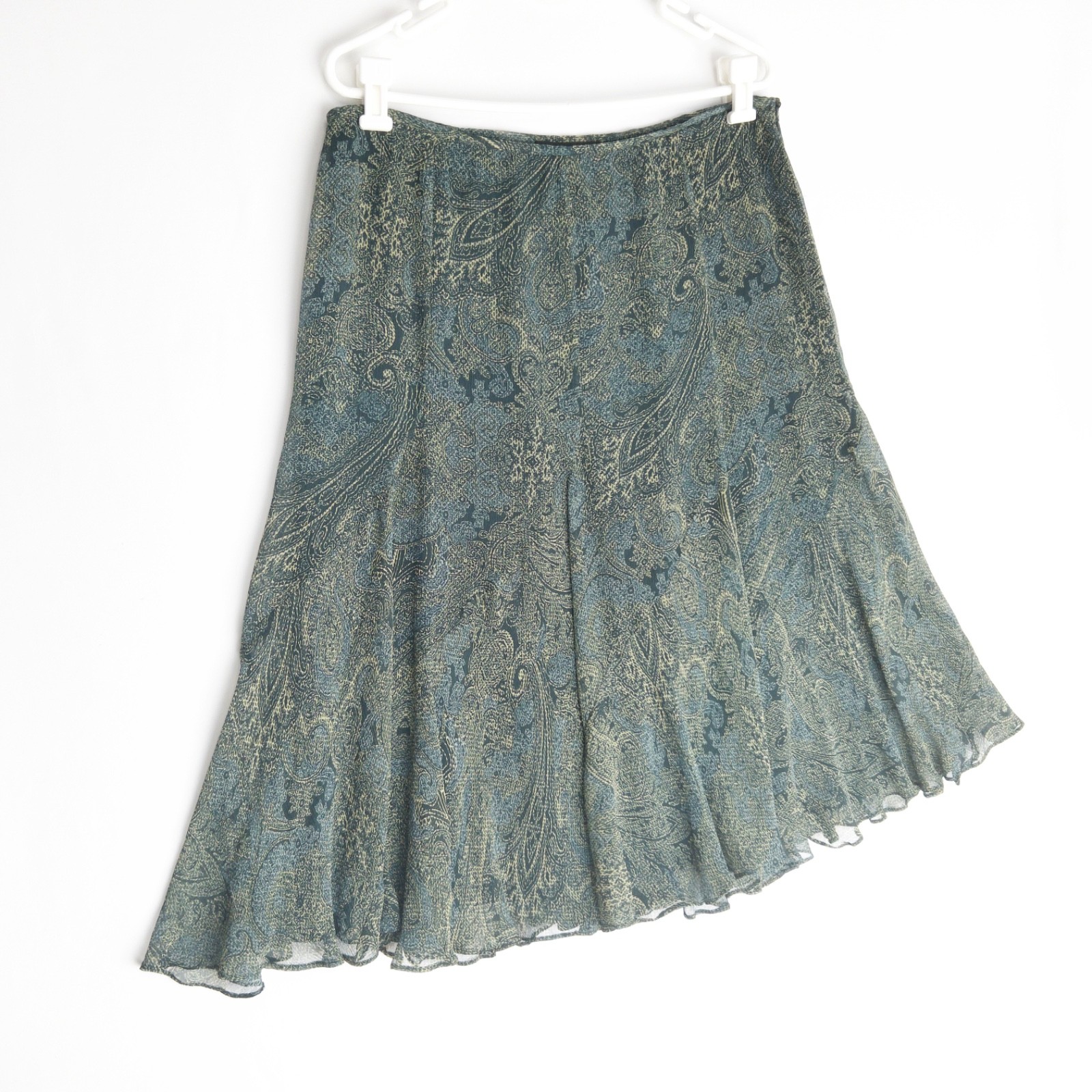 Jones New York 100 Silk Sheer Overlay Paisley Flowy Midi Skirt Womens 14P 14 P