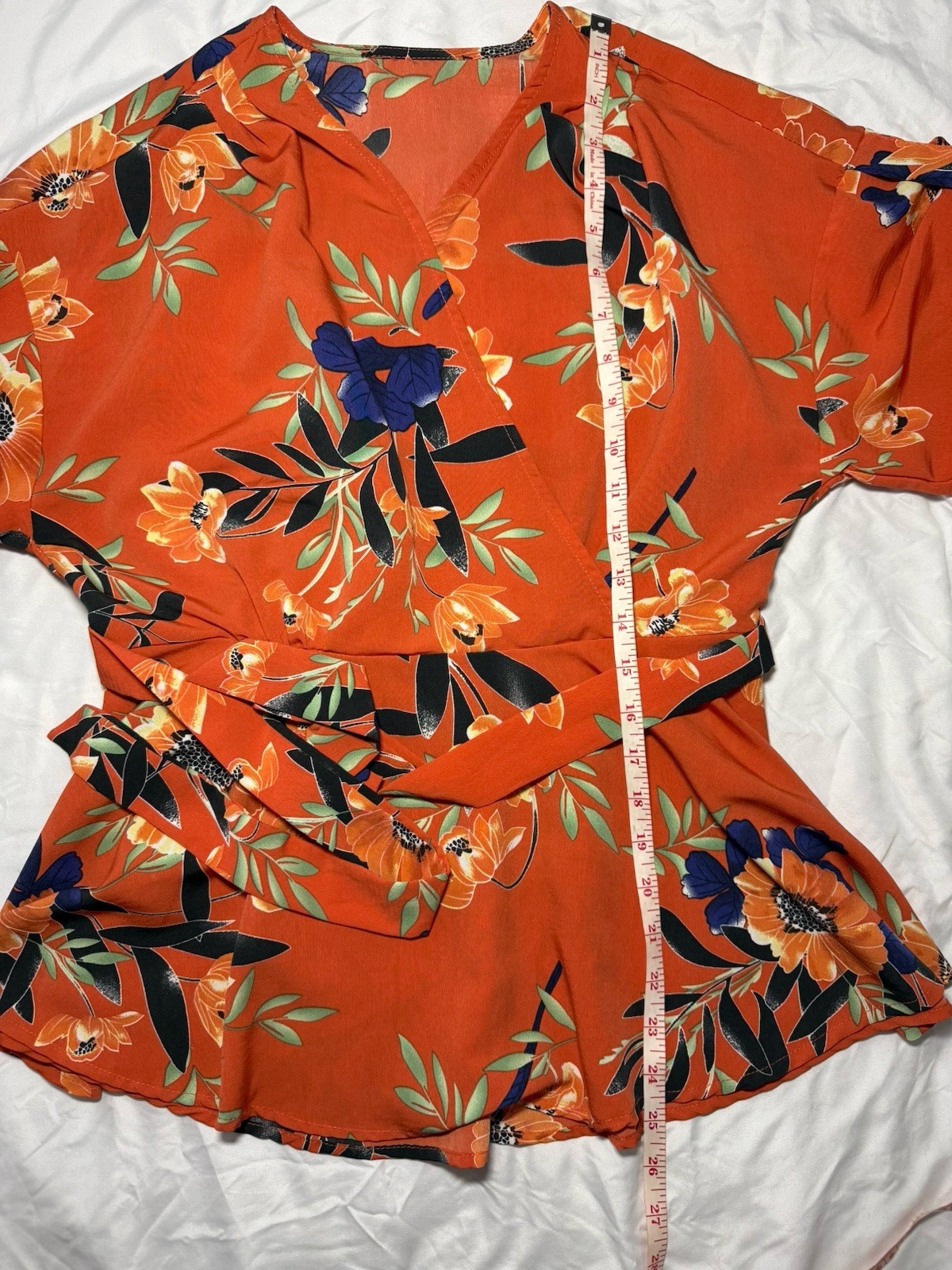 как выглядит RD Koko Orange Floral Tie Waist Romper V-Neck Long Sleeve фото