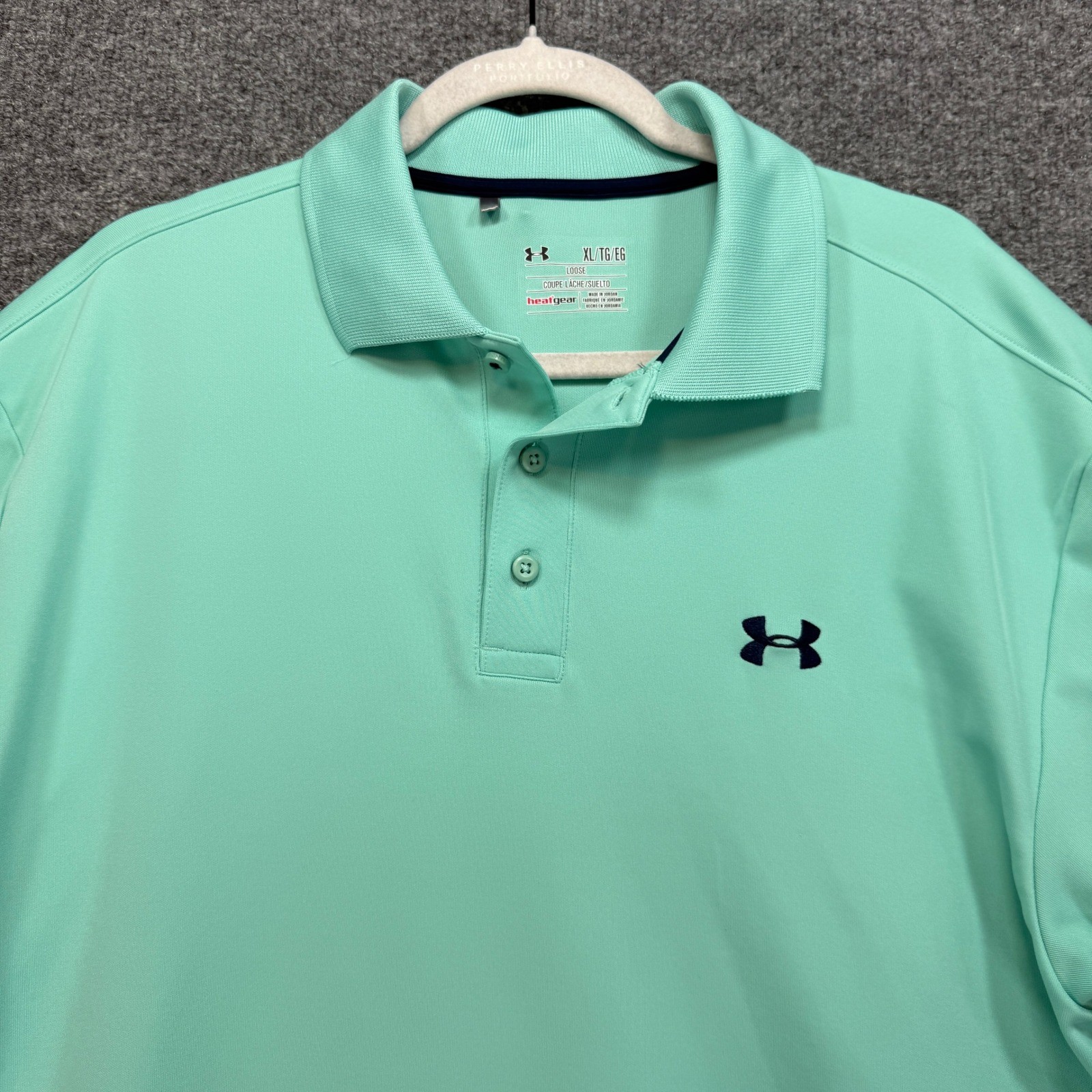Under Armour Polo Shirt Men XL Green HeatGear Loose Fit Short Sleeve Golf Top