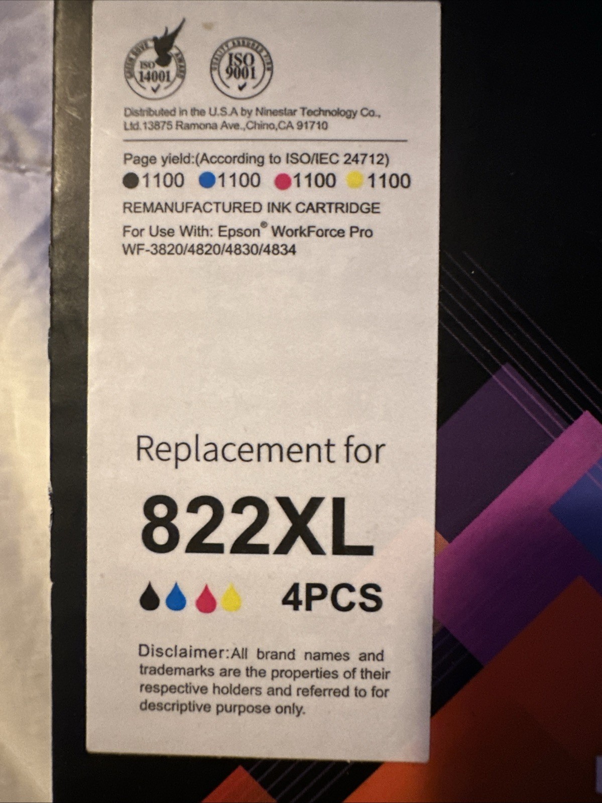 как выглядит 822XL Replacement Ink Cartridges 4 Colors for Epson Workforce Pro фото