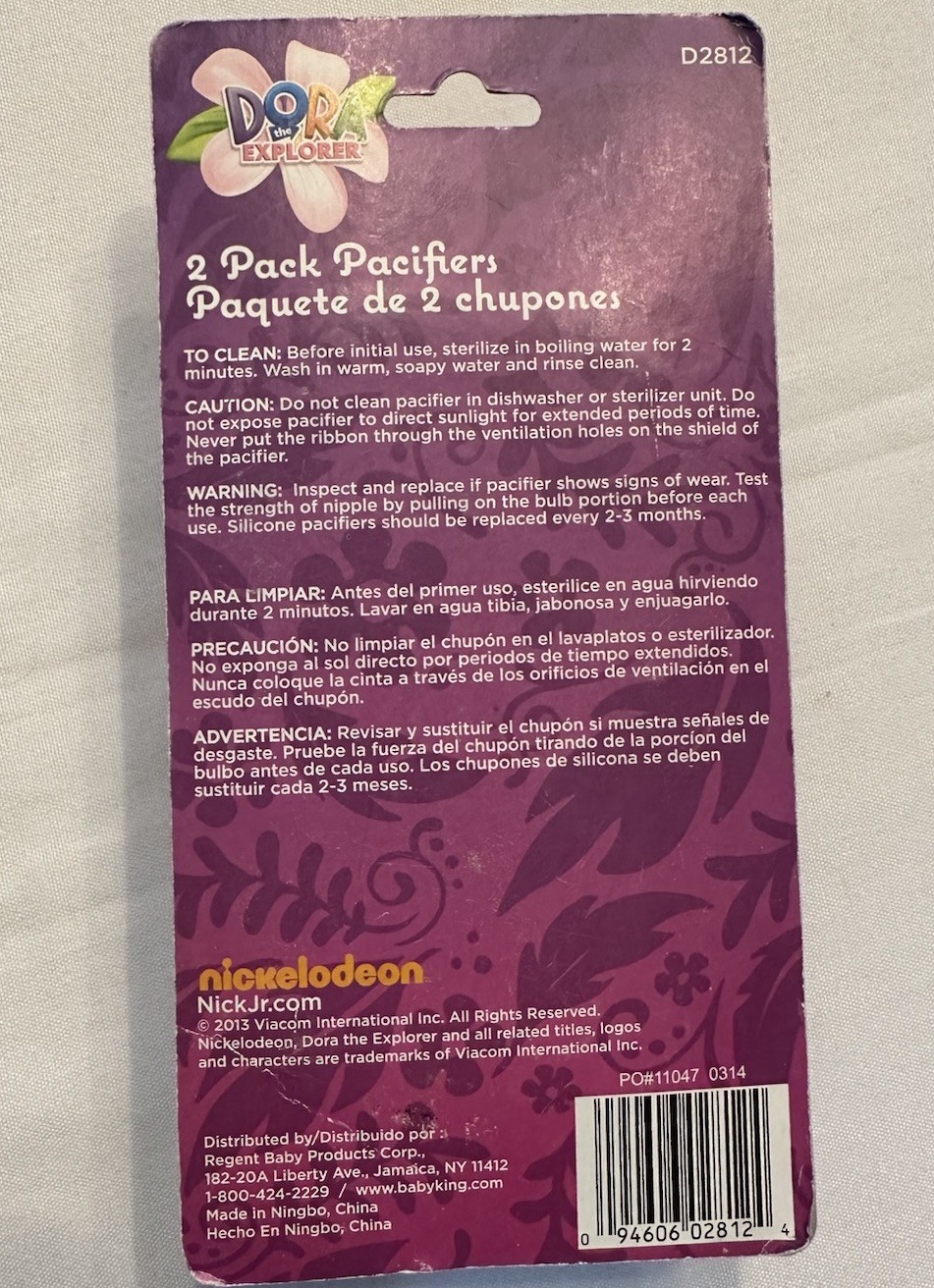 Nickelodeon Dora the Explorer 2-pack Pacifier Lot Lavender Yellow Baby Girl