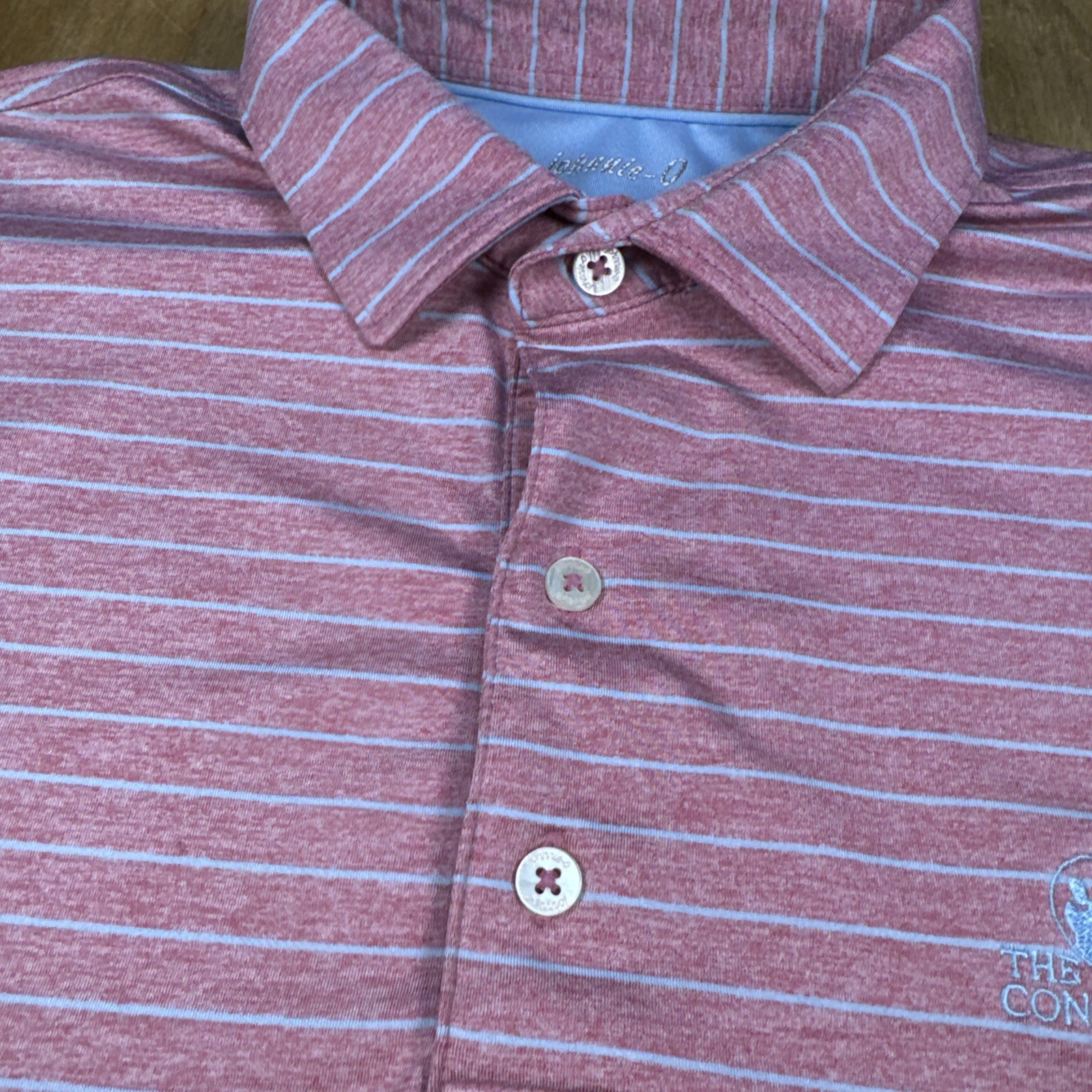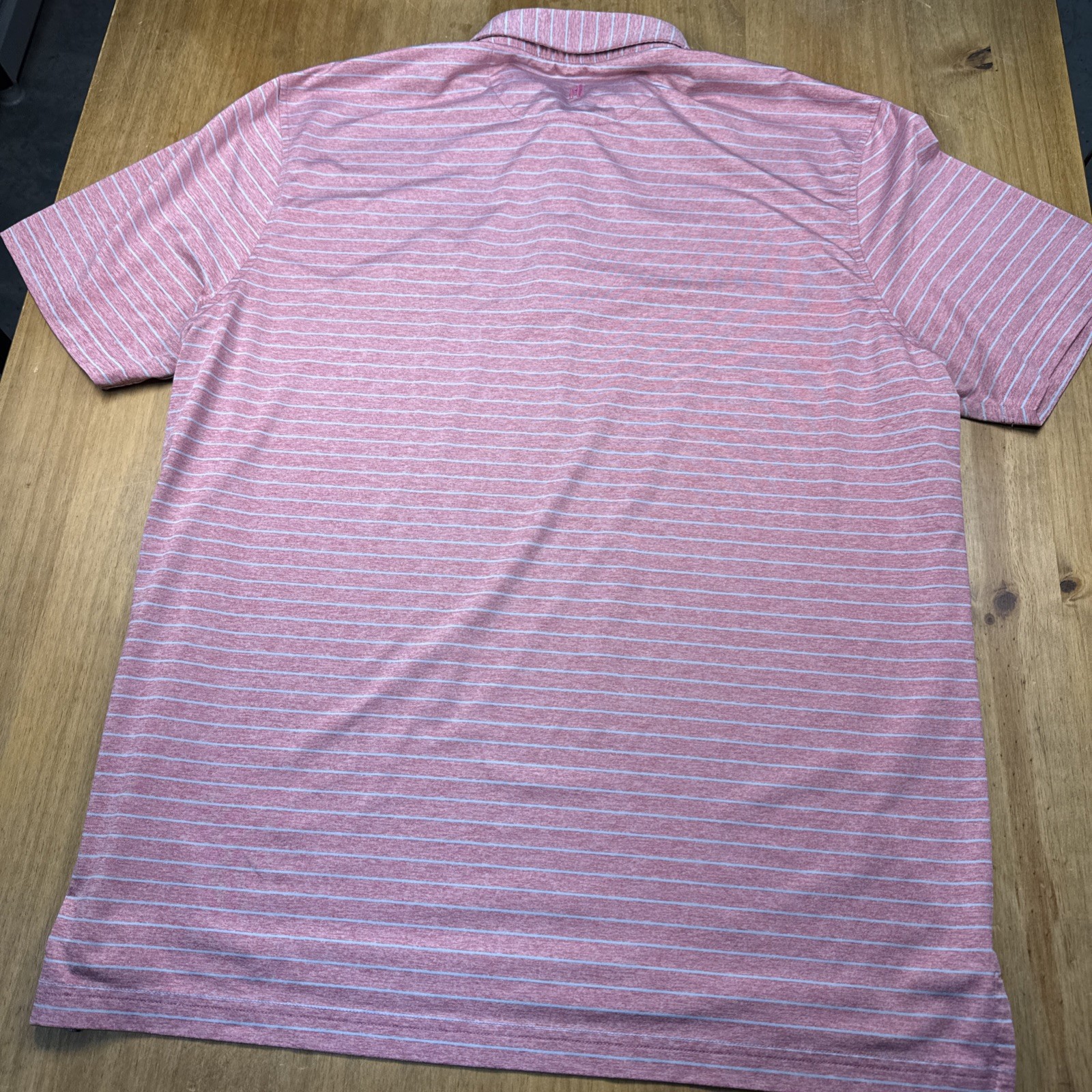 Johnnie O Golf Polo Shirt Men's L Pink /Blue Striped Performance Stretch Logo