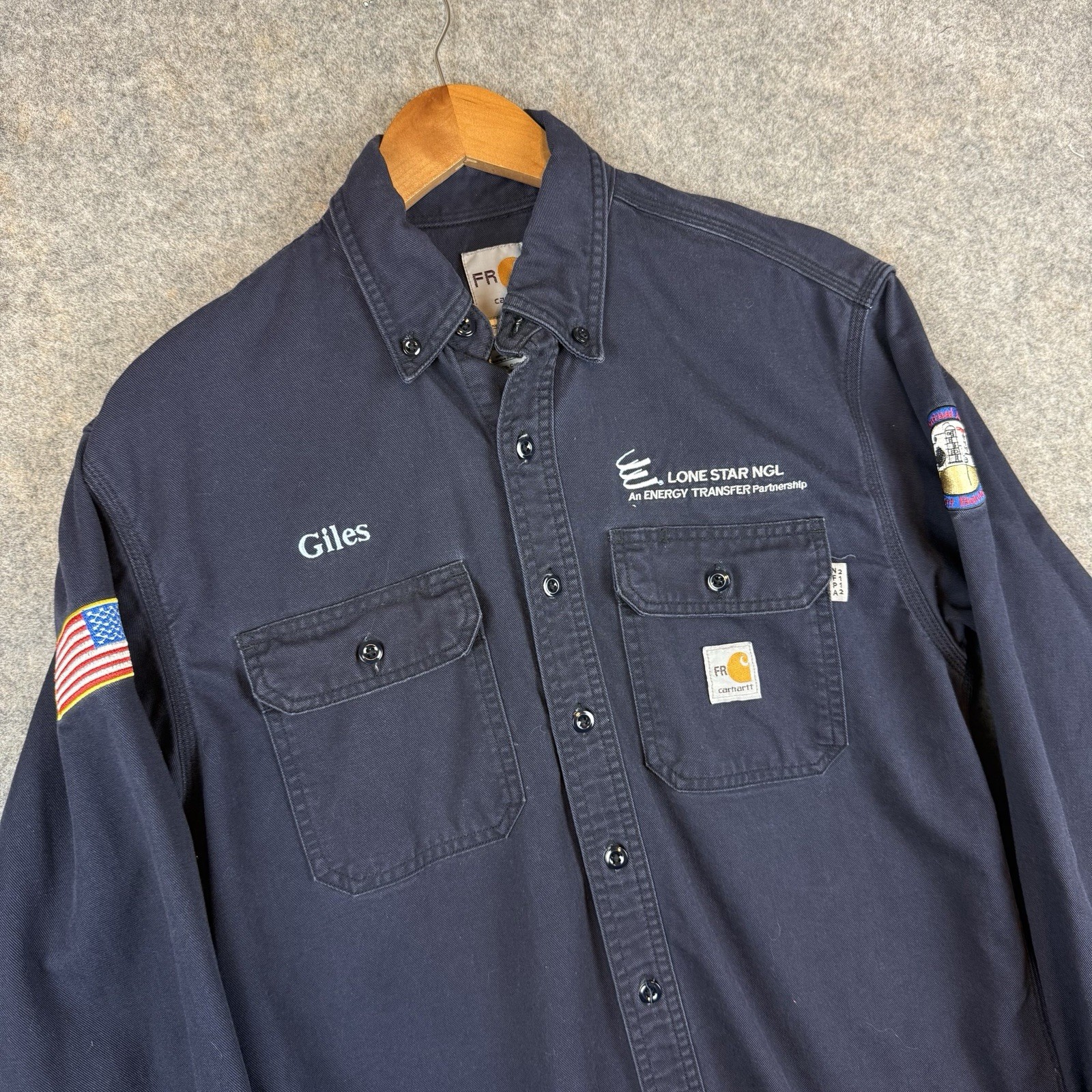 как выглядит Carhartt FR Button Shirt Mens Small Blue Workwear Flame Resistant CAT 2 фото