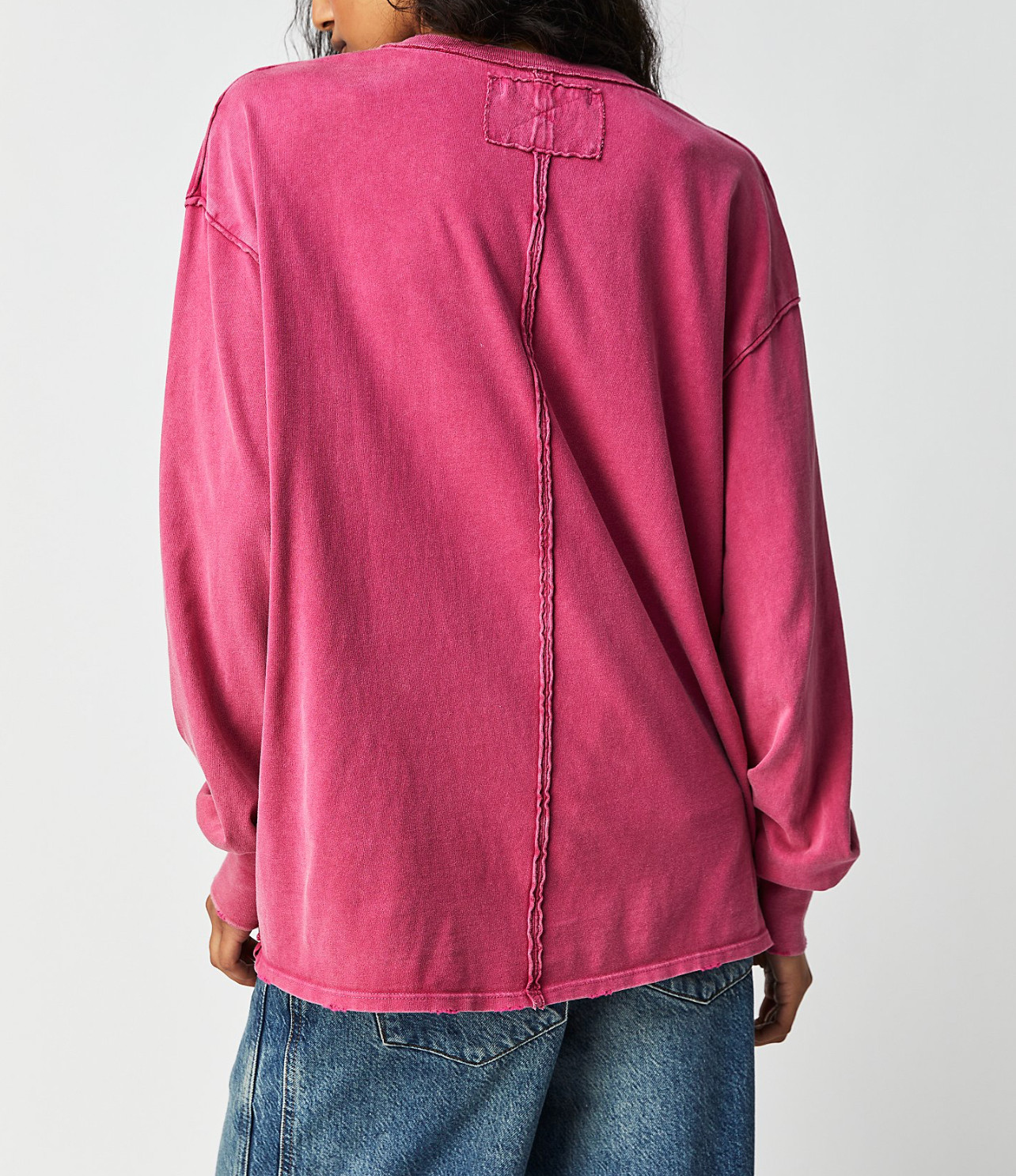 Free People We The Free Vivacious Long Sleeve Fade Into You Relaxed Tee Sz XS