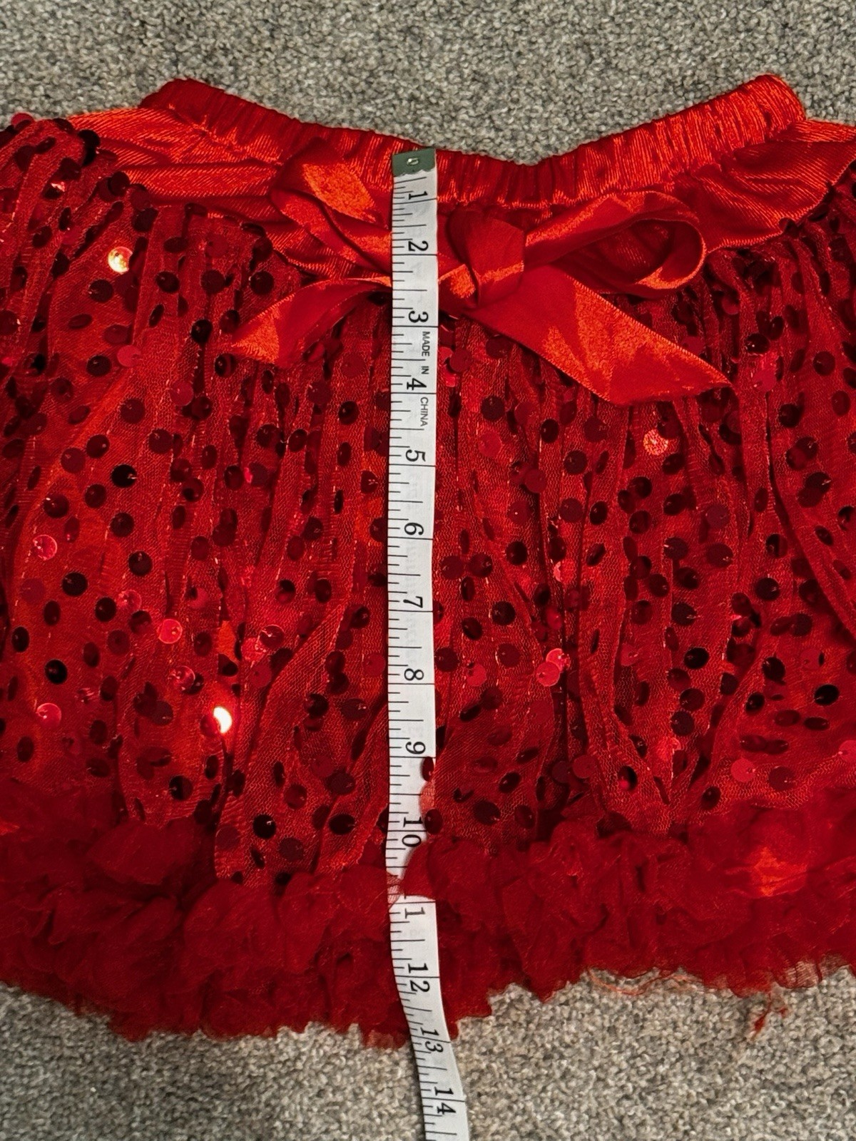Girl s Red Sequined Ballet Dance Tutu Layered Puffy Elastic Waist Shiny Size 7-8