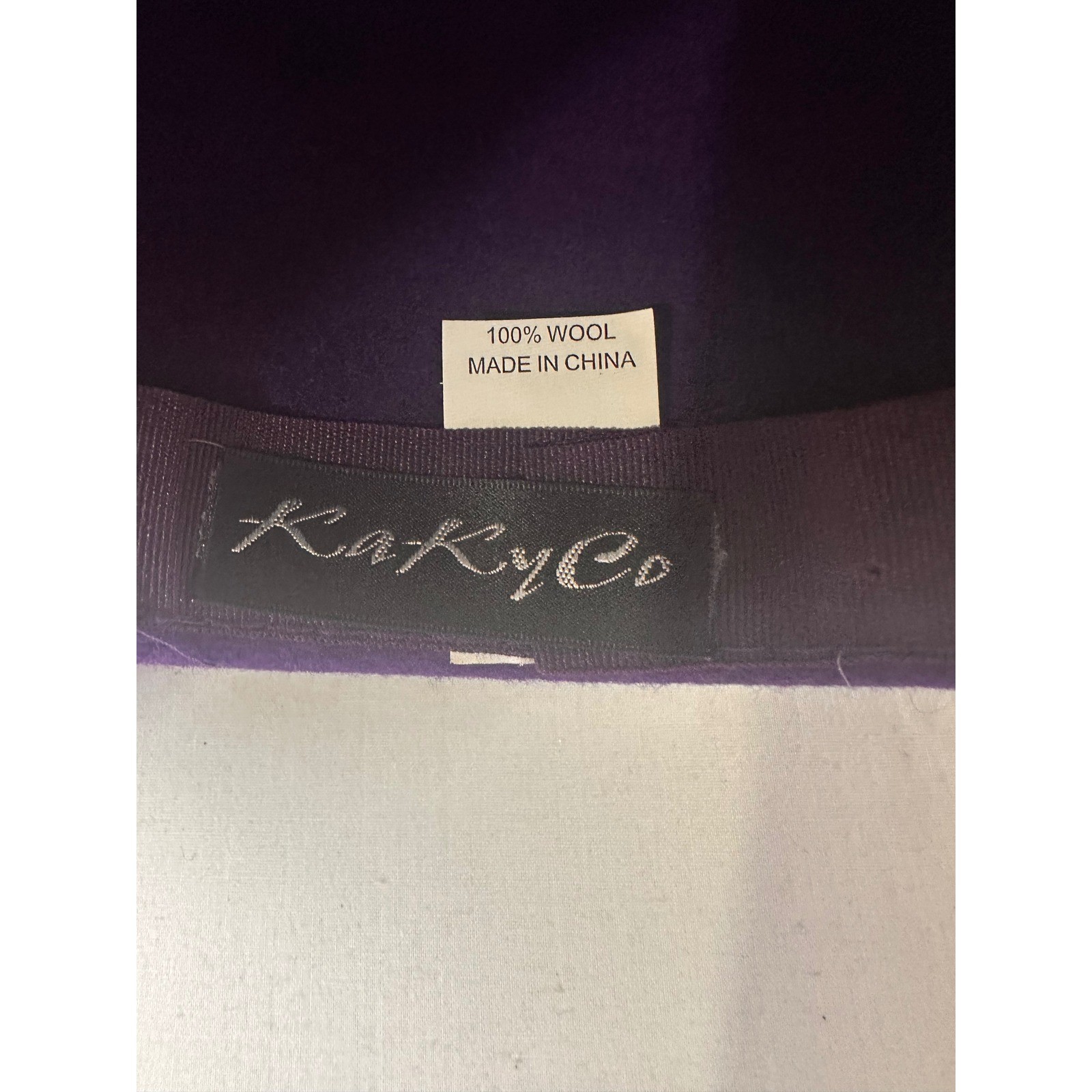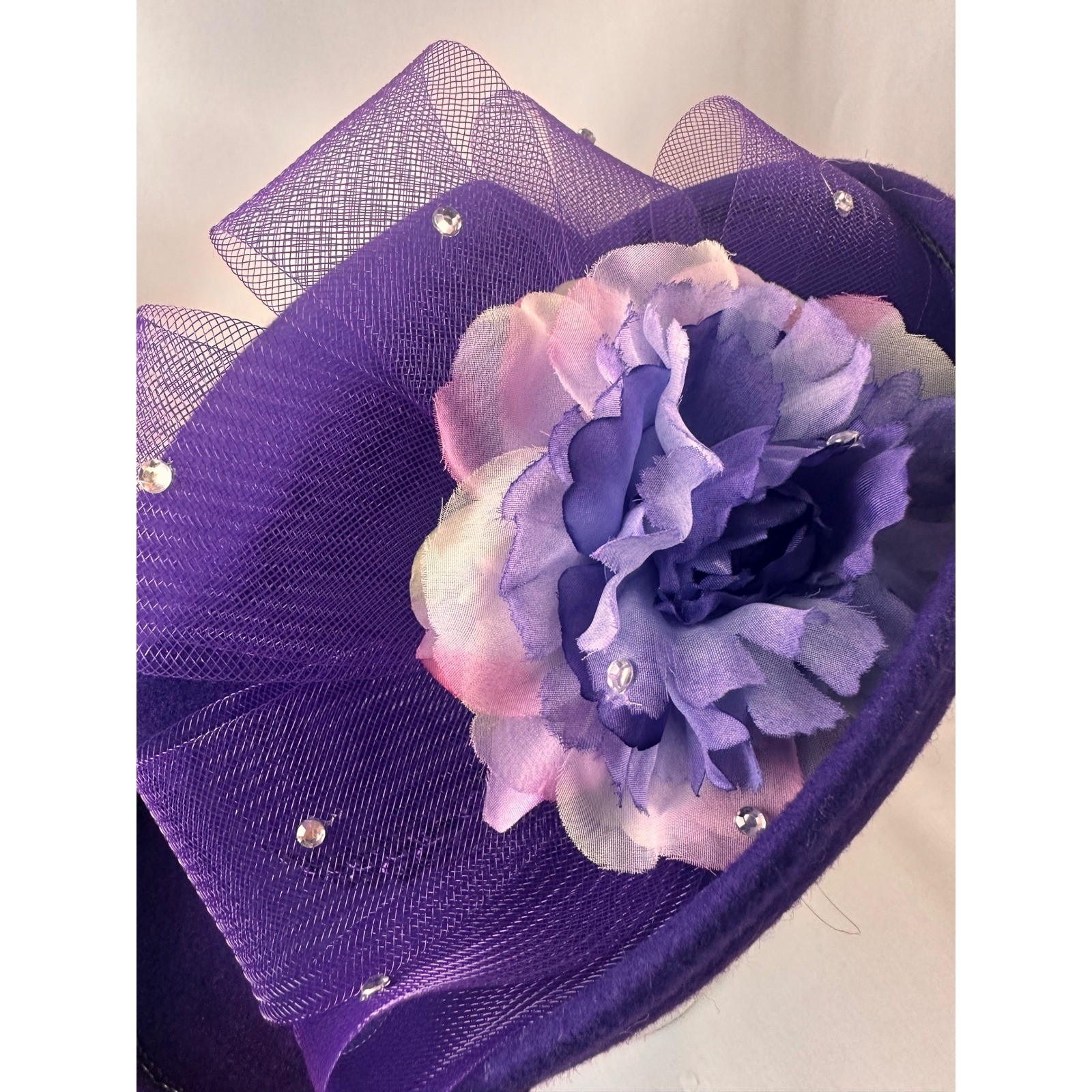 как выглядит KakyCo Purple 100 Wool Felt Couture Church Hat Flower Mesh Rhinestone Vintage фото