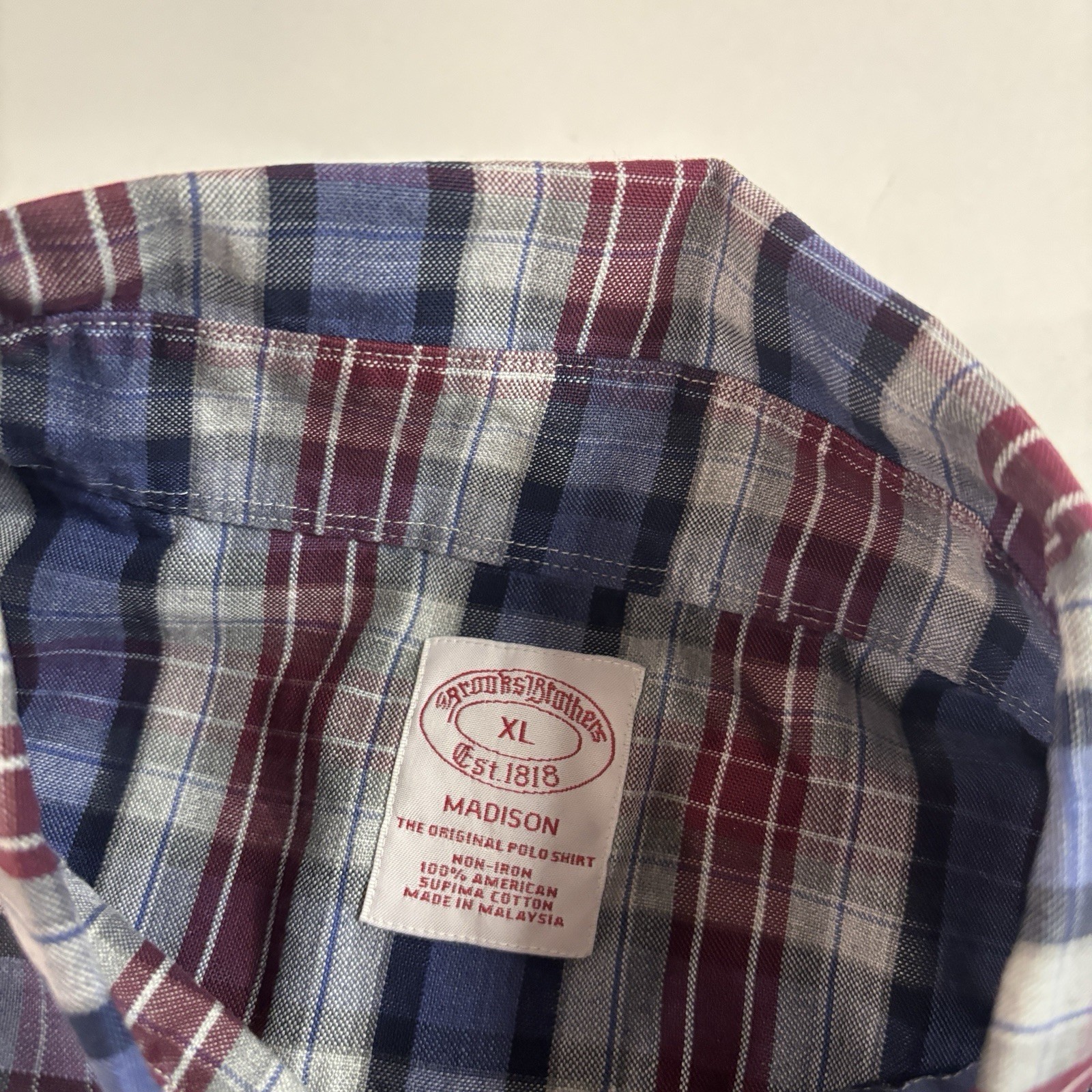 как выглядит Brooks Brothers Madison Fit Plaid Button Down Mens XL Non Iron Stretch Blue Red фото